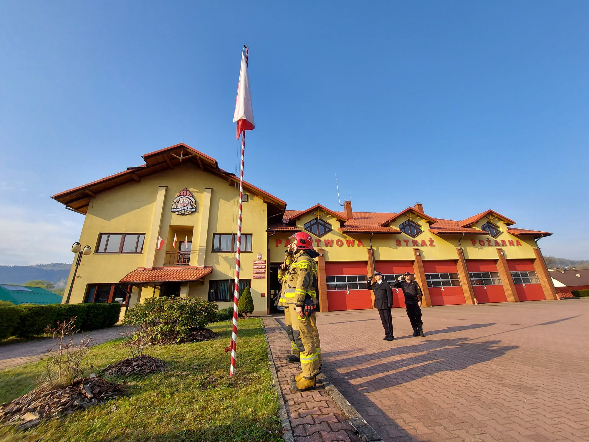 2 maja 2022 roku z okazji Dnia Flagi Rzeczypospolitej Polskiej w Jednostce Ratowniczo - Gaśniczej w Suchej Beskidzkiej odbyła się uroczysta zmiana służby połączona z podniesieniem na maszt flagi państwowej.