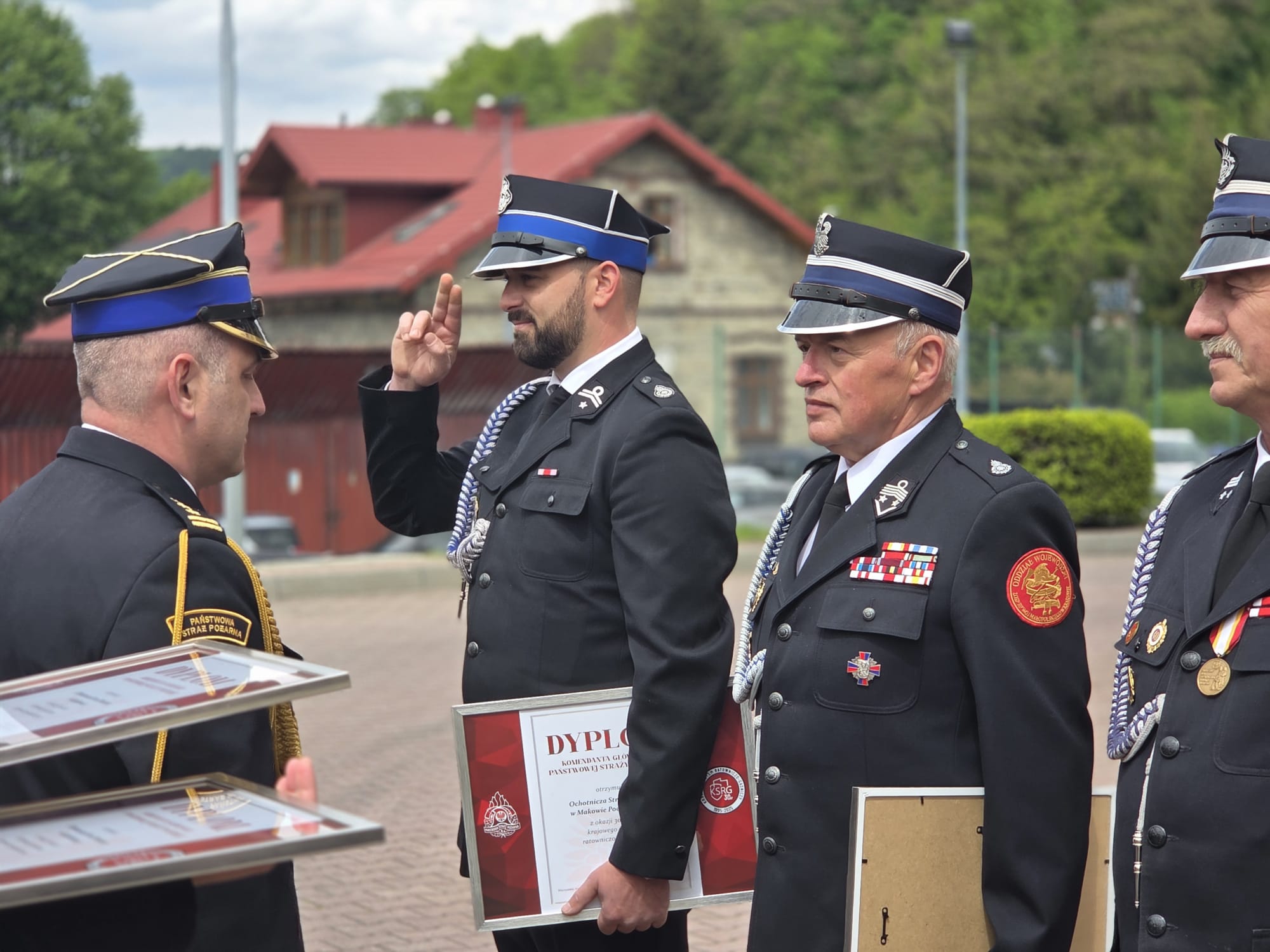 Wśród wręczających wyróżnienia i składających gratulacje znaleźli się m.in. st. bryg. Michał Polak – Zastępca Małopolskiego Komendanta Wojewódzkiego PSP, st. bryg. Krzysztof Okrzesik – Komendant Powiatowy PSP w Suchej Beskidzkiej oraz przedstawiciele Związku OSP RP.