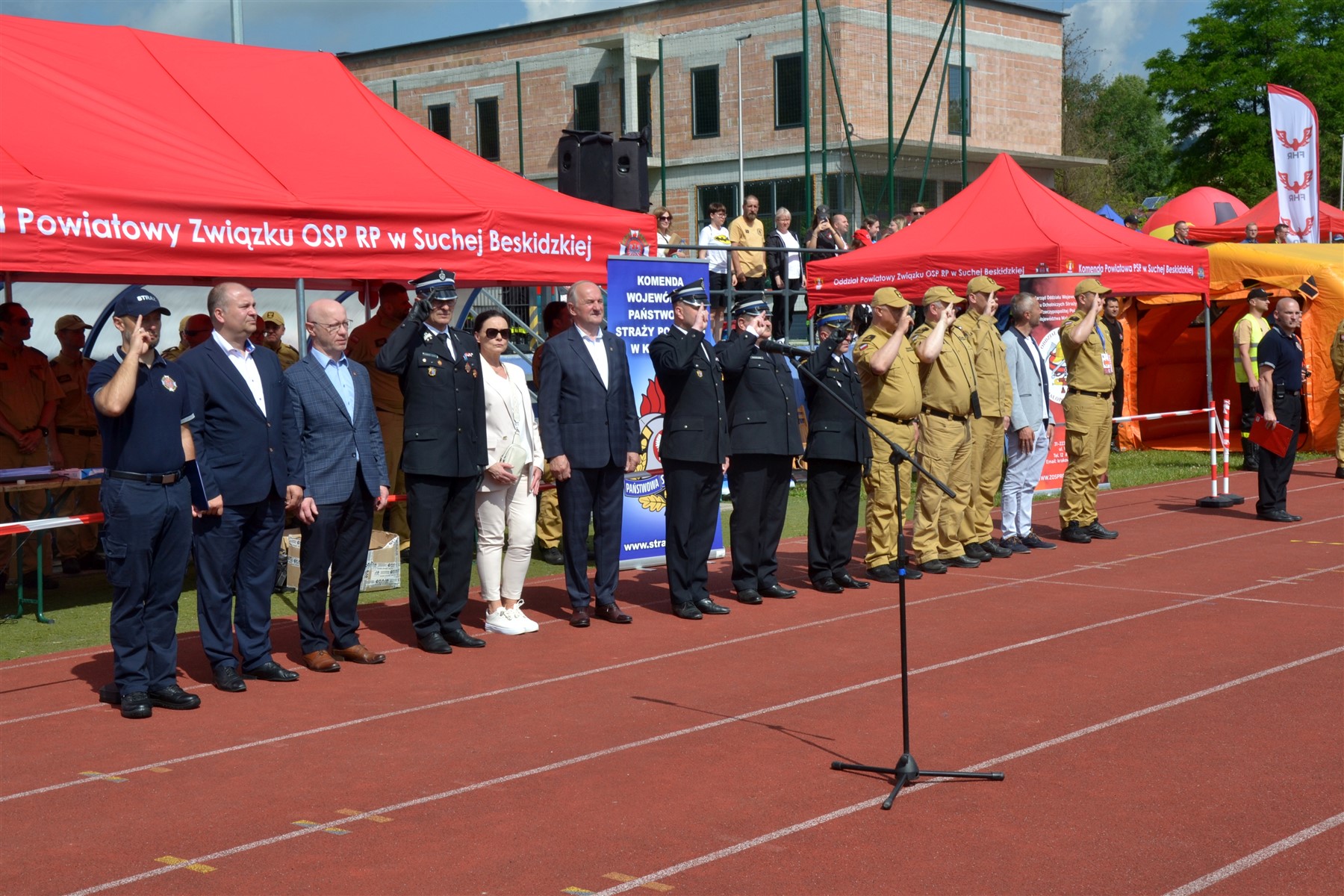 Przybyłych zawodników powitali, życząc zarazem sukcesu Burmistrz Miasta Stanisław Lichosyt, Starosta Suski Józef Bałos, sekretarz stanu w Ministerstwie Klimatu i Środowiska, prezes Zarządu Oddziału Wojewódzkiego ZOSP RP w Małopolsce Edward Siarka oraz zastępca Małopolskiego Komendanta Wojewódzkiego PSP st. bryg. Paweł Żaba.