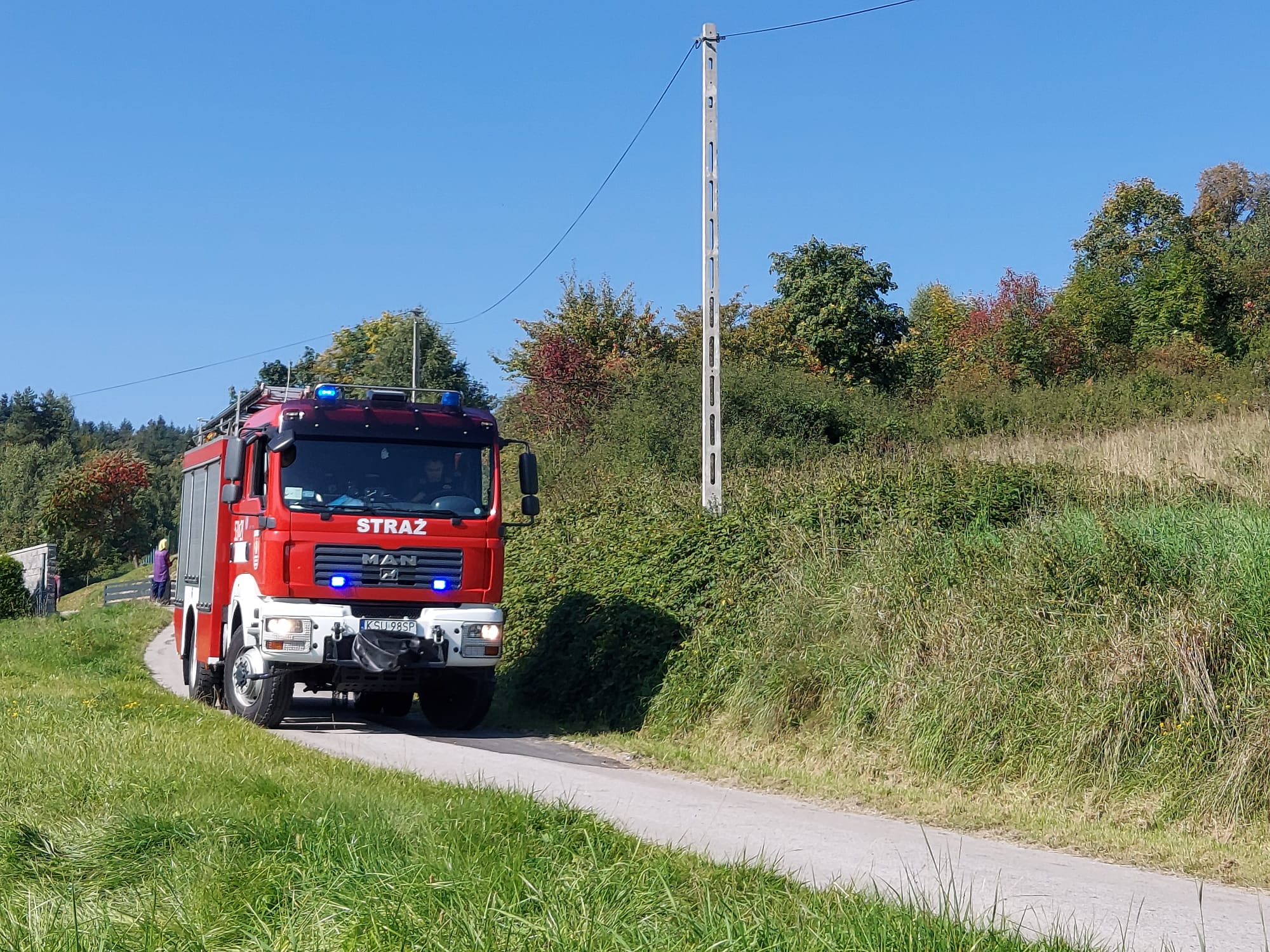 Na miejsce zostały zadysponowane zastępy z Jednostki Ratowniczo – Gaśniczej w Suchej Beskidzkiej wraz z pojazdem Quad oraz Ochotnicza Straż Pożarna z Grzechyni.