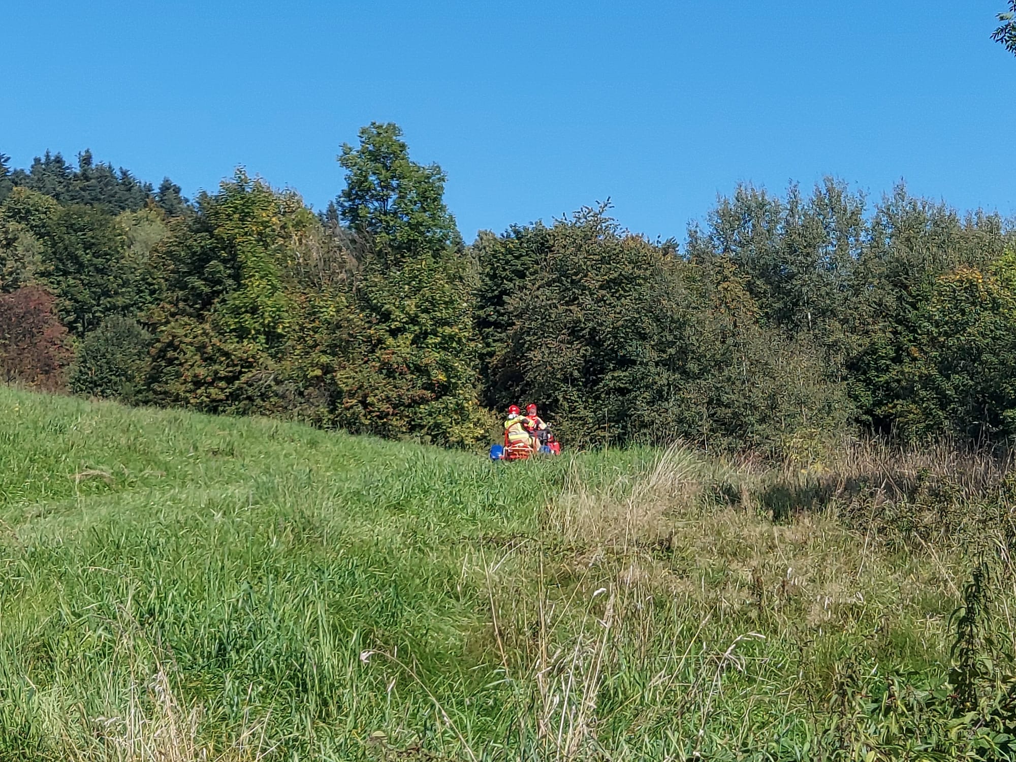 Strażacy udzielili kwalifikowanej pierwszej pomocy medycznej osobie poszkodowanej, na miejsce pojazdem Quad dowieziono ratownika medycznego z zespołu ratownictwa medycznego. Następnie pod nadzorem ratowników medycznych przetransportowano osobę poszkodowaną. Do transportu użyto pojazdu Quad oraz przyczepki do ewakuacji osób poszkodowanych. Osoba poszkodowana została zabrana do szpitala.