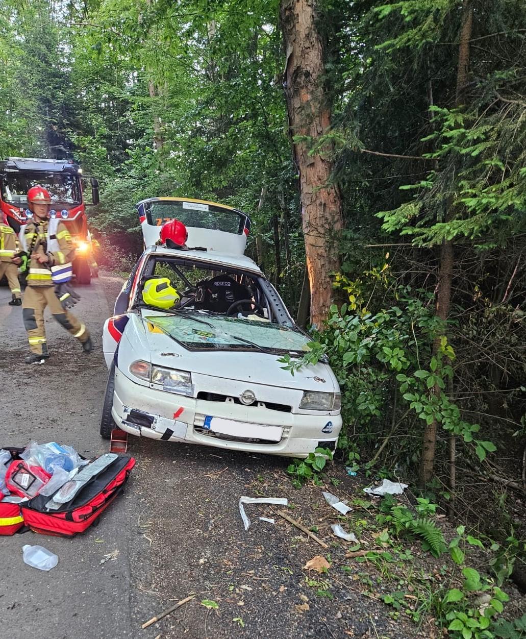 8 czerwca 2024 roku, około godziny 18:40, dyżurny Stanowiska Kierowania Komendanta Powiatowego Państwowej Straży Pożarnej otrzymał zgłoszenie o wypadku samochodu na trasie rajdu.