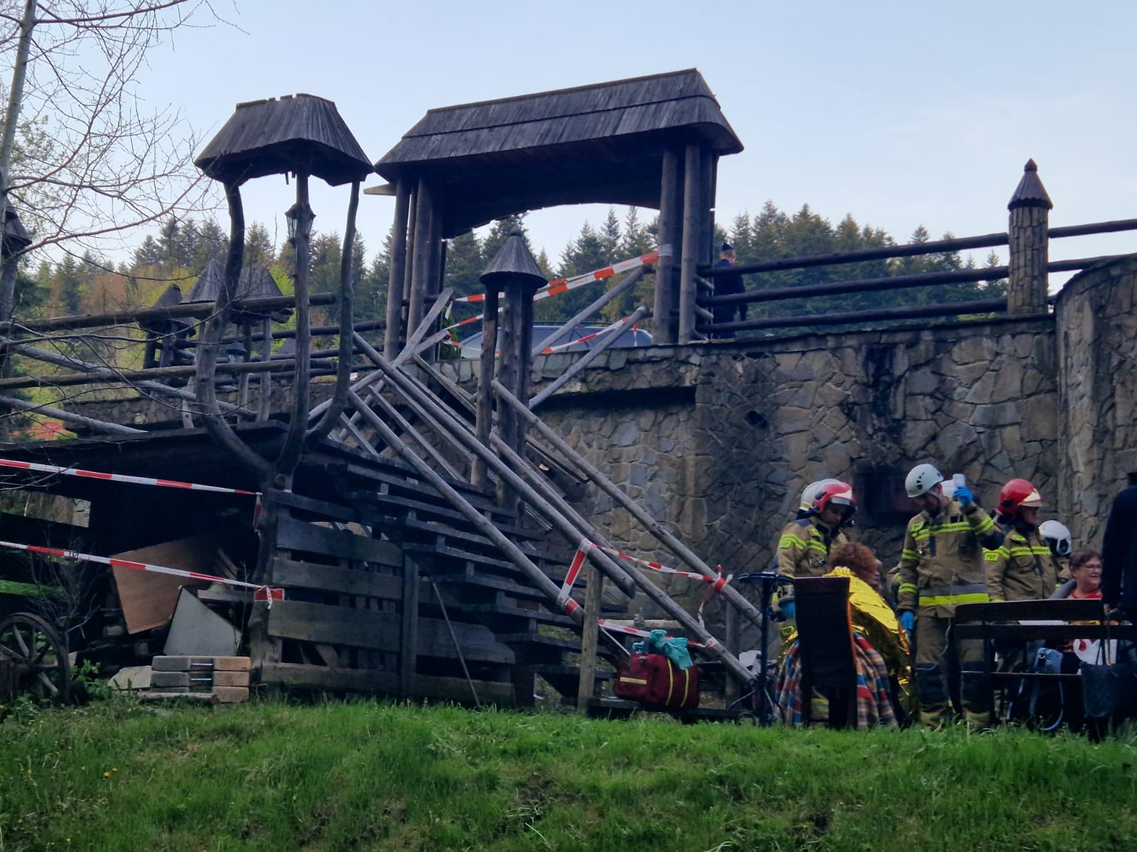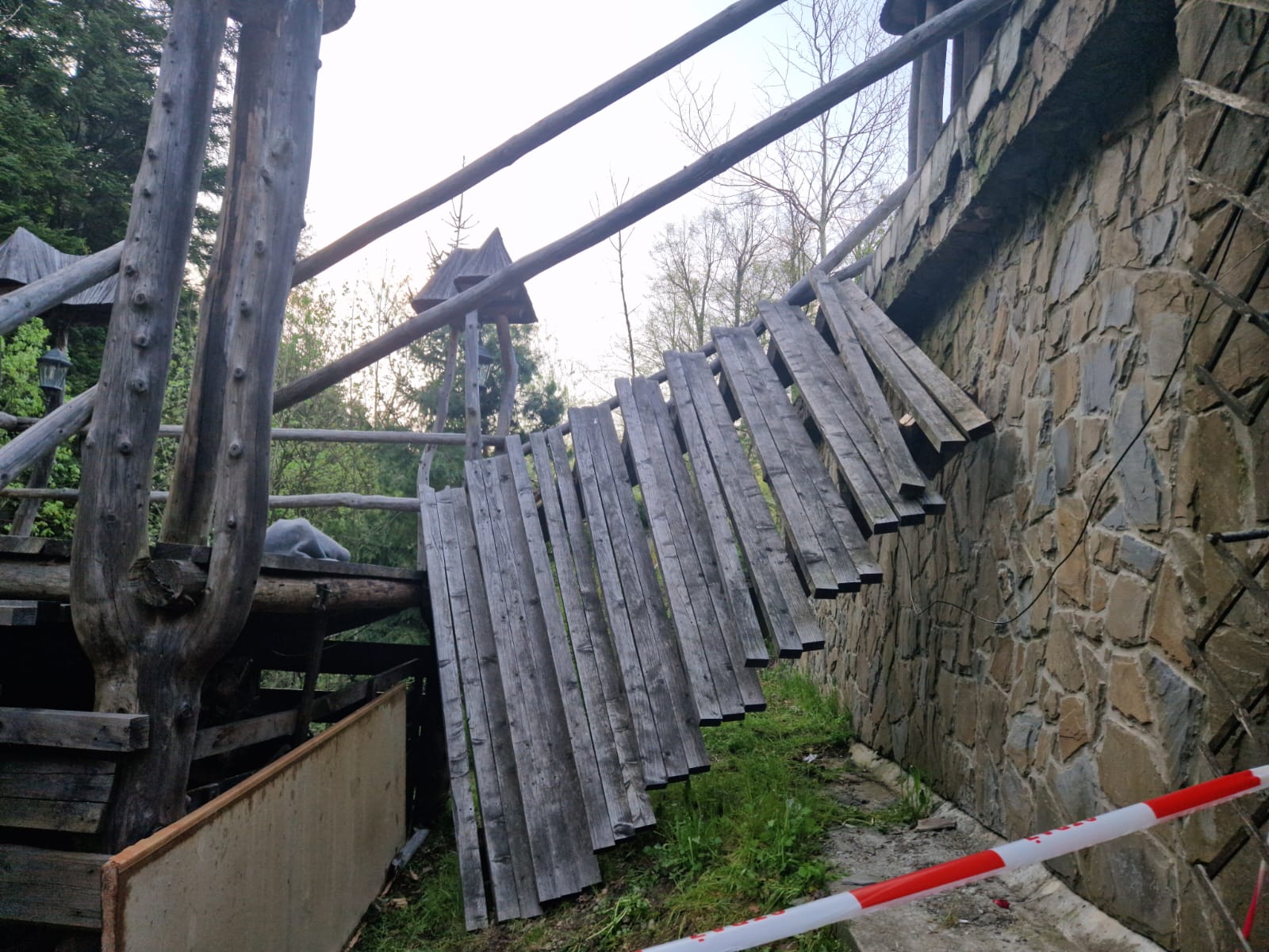 W dniu 20 maja 2023 roku około godziny 19:20 dyżurny stanowiska kierowania komendanta powiatowego PSP otrzymał zgłoszenie z WCPR-u informujące o zawaleniu się schodów przy karczmie obok wyciągu narciarskiego w miejscowości Zawoja. Na miejscu znajdowało się kilka osób poszkodowanych.