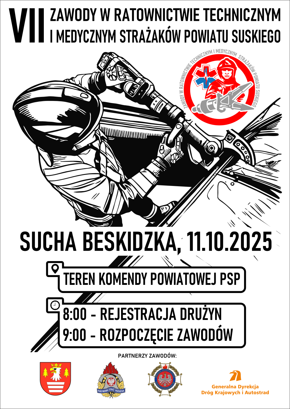 Komenda Powiatowa Państwowej Straży Pożarnej w Suchej Beskidzkiej organizuje VII Zawody w Ratownictwie Technicznym i Medycznym Strażaków Powiatu Suskiego. Zawody są okazja do ćwiczenia sytuacji z jakimi strażacy spotykają się w trakcie działań ratowniczych na drogach. Zawody odbędą sie 11 października br. o godzinie 9:00 na placu przy KP PSP Sucha Beskidzka.
