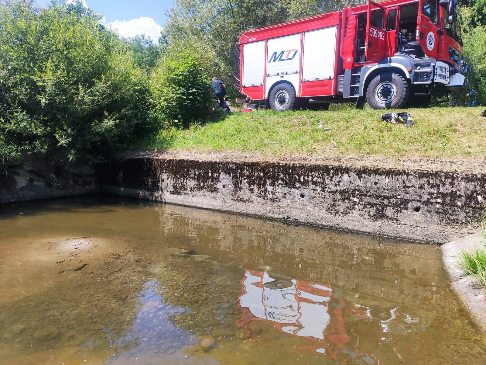 Po dojechaniu na miejsce strażacy zastali osobę leżącą w cieku wodnym. U poszkodowanego widoczna rana głowy, poszkodowany przytomny. Strażacy za pomocą noszy ewakuowali osobę na brzeg, gdzie została jej udzielona kwalifikowana pierwsza pomoc. Po dojechaniu na miejsce zespołu ratownictwa medycznego poszkodowany został przekazany pogotowiu.