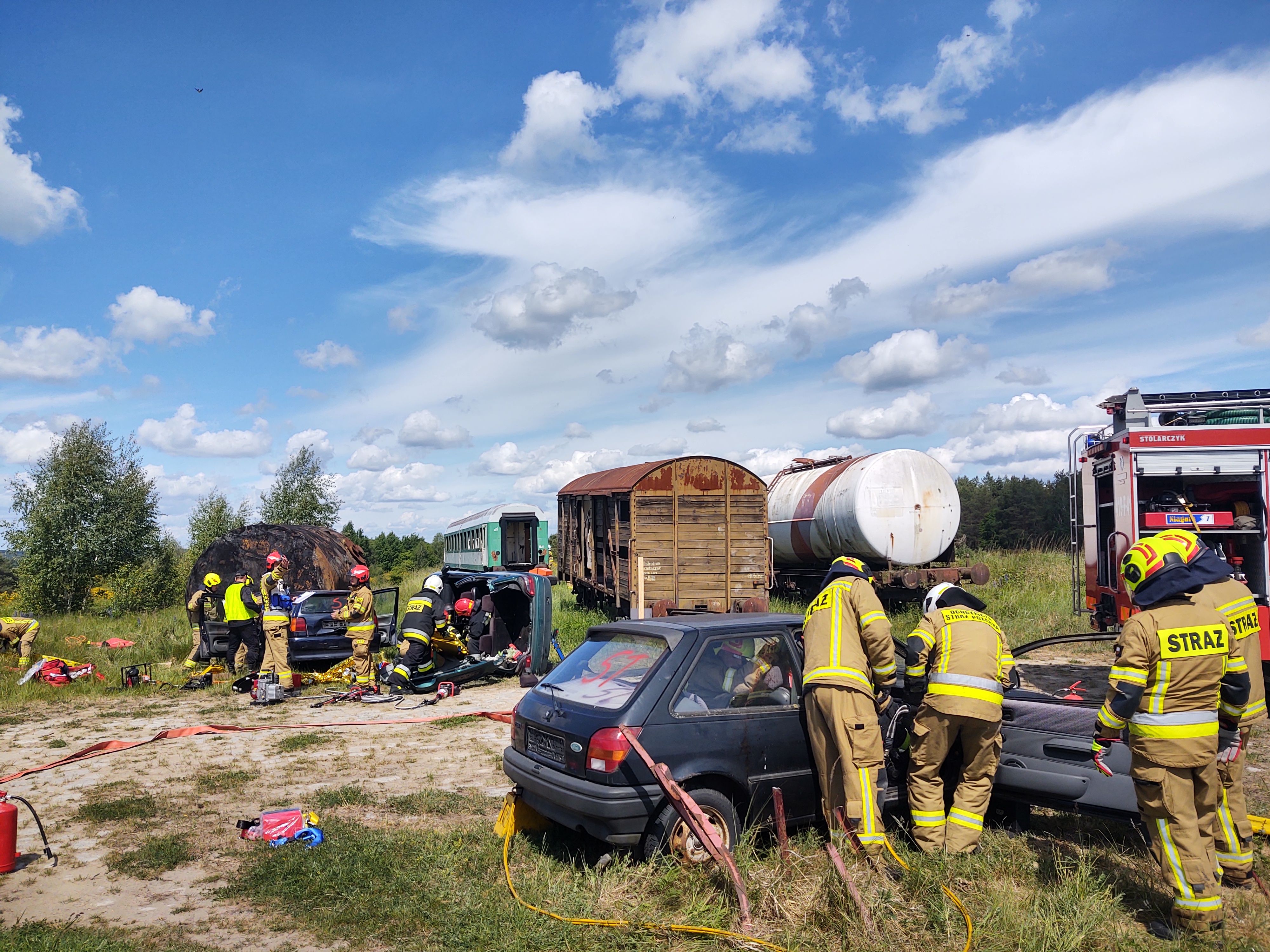 Na nieoznakowanym przejeździe kolejowym dochodzi do wypadku. Pociąg osobowy uderza w przejeżdżające przez przejazd samochody. W samochodach zostają uwięzieni ludzie. W wyniku zdarzenia poszkodowana jest również grupa rowerzystów i pieszych znajdujących się w pobliżu przejazdu. Po kolizji pociąg przejeżdża dalej, jeden z wagonów wykoleja się. Dochodzi do nagłego zatrzymania składu, podróżujący pociągiem doznają obrażeń, część osób zostaje uwięziona w przedziałach. W całym zdarzeniu jest duża ilość osób poszkodowanych. Na szczęście to tylko scenariusz ćwiczeń pod kryptonimem „Przejazd 2022”, które zostały przeprowadzone w dniu 31 maja przez Komendę Powiatową Państwowej Straży Pożarnej w Sulęcinie. Głównym celem ćwiczeń było doskonalenie prowadzenia działań ratowniczo – gaśniczych podczas zdarzeń o charakterze mnogim/masowym. W ćwiczeniach udział brały zastępy z KP PSP w Sulęcinie, zastępy OSP z Trzemeszna Lub., Torzymia i Glisna, zastępy WSP Komendy poligonu i MPS oraz zaproszona Sekcja Rat. Medycznego z SGSP.
