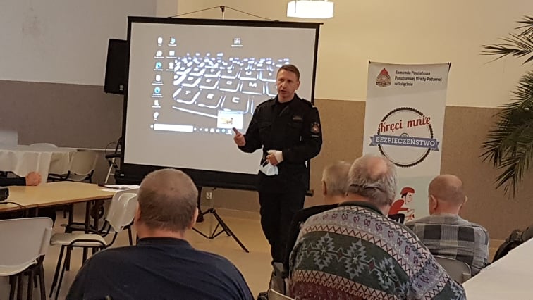 W ramach akcji „Kręci mnie bezpieczeństwo” funkcjonariusz Komendy Powiatowej Państwowej Straży Pożarnej w Sulęcinie przeprowadził w Domu Pomocy Społecznej Tursk rozmowę na temat bezpieczeństwa pożarowego. Podczas spotkania z mieszkańcami i personelem DPS-u omówiono takie tematy, jak zagrożenia jakie może spowodować pożar, rola czujek dymowych, nieprzestrzeganie regulaminów DPS dotyczących bezpieczeństwa oraz sposoby zachowania się i alarmowania w momencie zauważenia pożaru.