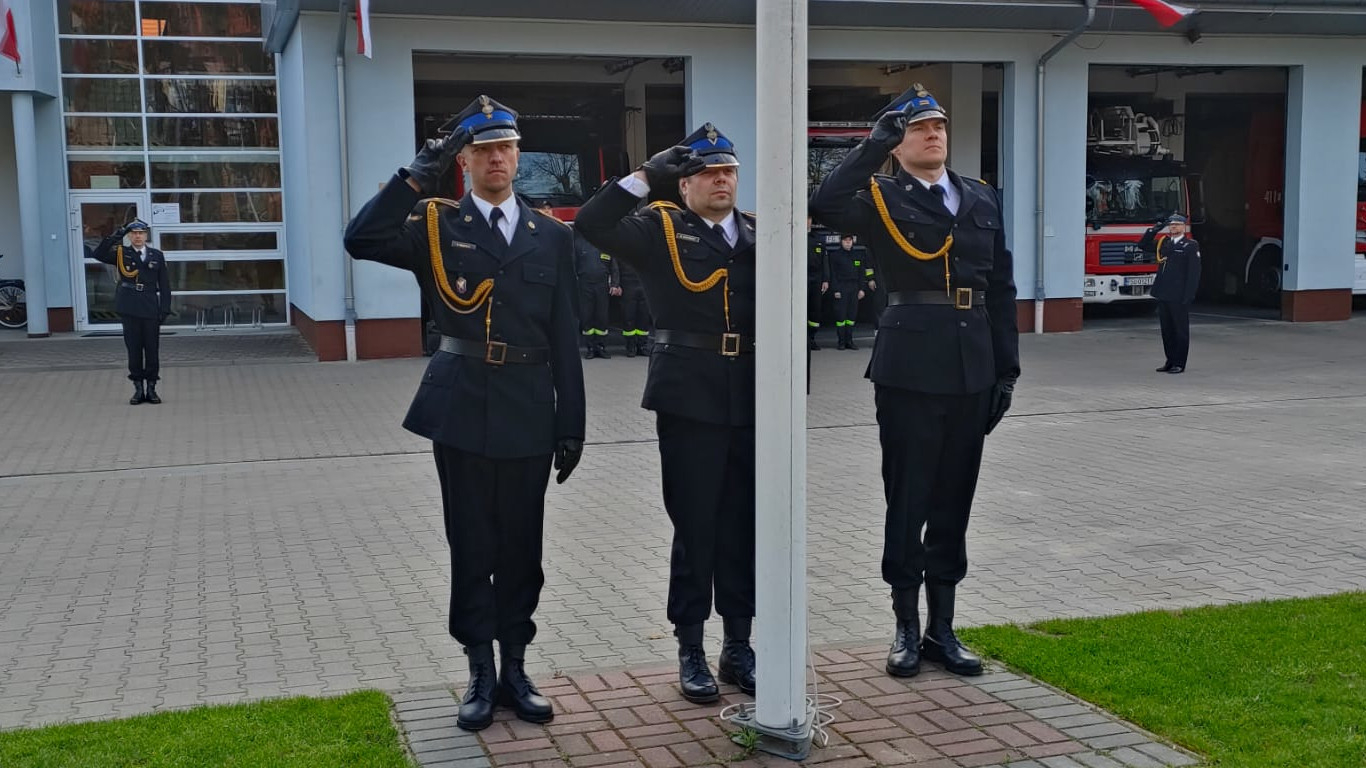 Uroczystym podniesieniem flagi państwowej na maszt, uczczono Dzień Flagi Rzeczypospolitej Polskiej w Komendzie Powiatowej Państwowej Straży Pożarnej w Sulęcinie.