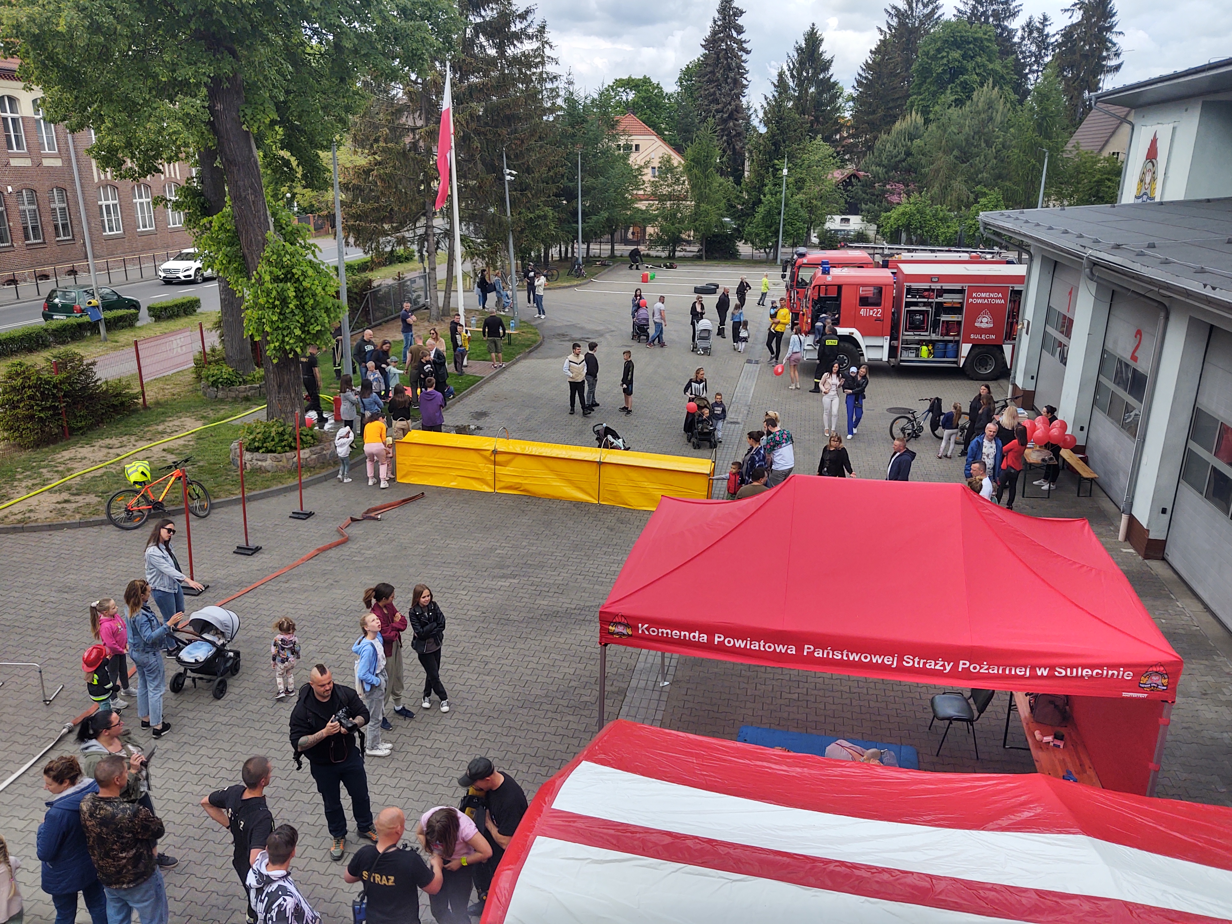 W dniu 22 maja 2022 r. na ternie naszej komendy odbył się Festyn Strażacki, którego celem było zapoznanie mieszkańców a szczególnie dzieci z zagrożeniami występującymi w codziennym życiu oraz sposobami ich unikania i zwalczania. Festyn służył również integracji lokalnej społeczności i był okazją do bliższego poznania naszej formacji. Wśród przygotowanych atrakcji, znalazły się między innymi: przejazd strażackim melexem i gaszenie pozorowanego pożaru, tor przeszkód i operowanie prądami wody, rodzinna rywalizacja w mini Firefighter Combat Challenge oraz dmuchana zjeżdżalnia. Ponadto zorganizowane zostały pokazy sprzętu strażackiego, pokazy gaszenia oleju oraz prowadzone były zajęcia z pierwszej pomocy. Atrakcji było więc co niemiara, pogoda dopisała a Festyn cieszył się bardzo dużym zainteresowaniem.