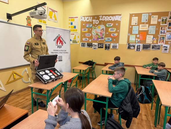 W miniony piątek, w ramach akcji społecznej prowadzonej przez Państwową Straż Pożarną „Czujka na straży Twojego bezpieczeństwa” nasz funkcjonariusz odwiedził uczniów klas 5 Szkoły Podstawowej nr 1 w Sulęcinie. Podczas spotkania uczniowie zostali zapoznani z zasadami bezpiecznego zachowania w sytuacjach zagrożenia, oraz z zasadami działania czujek dymu i tlenku węgla, podkreślając ich ogromne znaczenie dla naszego bezpieczeństwa. Mamy nadzieję, że dla uczniów była to cenna lekcja odpowiedzialności i troski o bezpieczeństwo własne oraz innych.