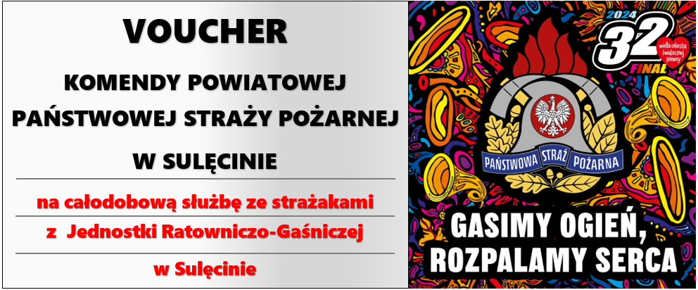 Komenda Powiatowa Państwowej Straży Pożarnej w Sulęcinie włącza się w tegoroczny finał WOŚP i przekazuje na licytację dwa vouchery na całodobowy pobyt w Jednostce Ratowniczo-Gaśniczej.