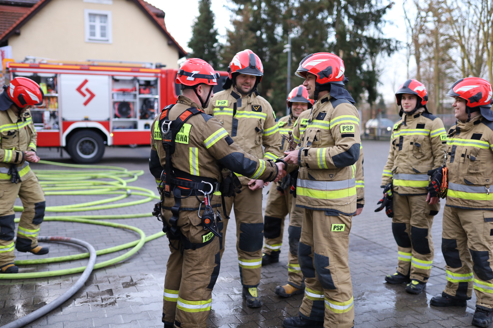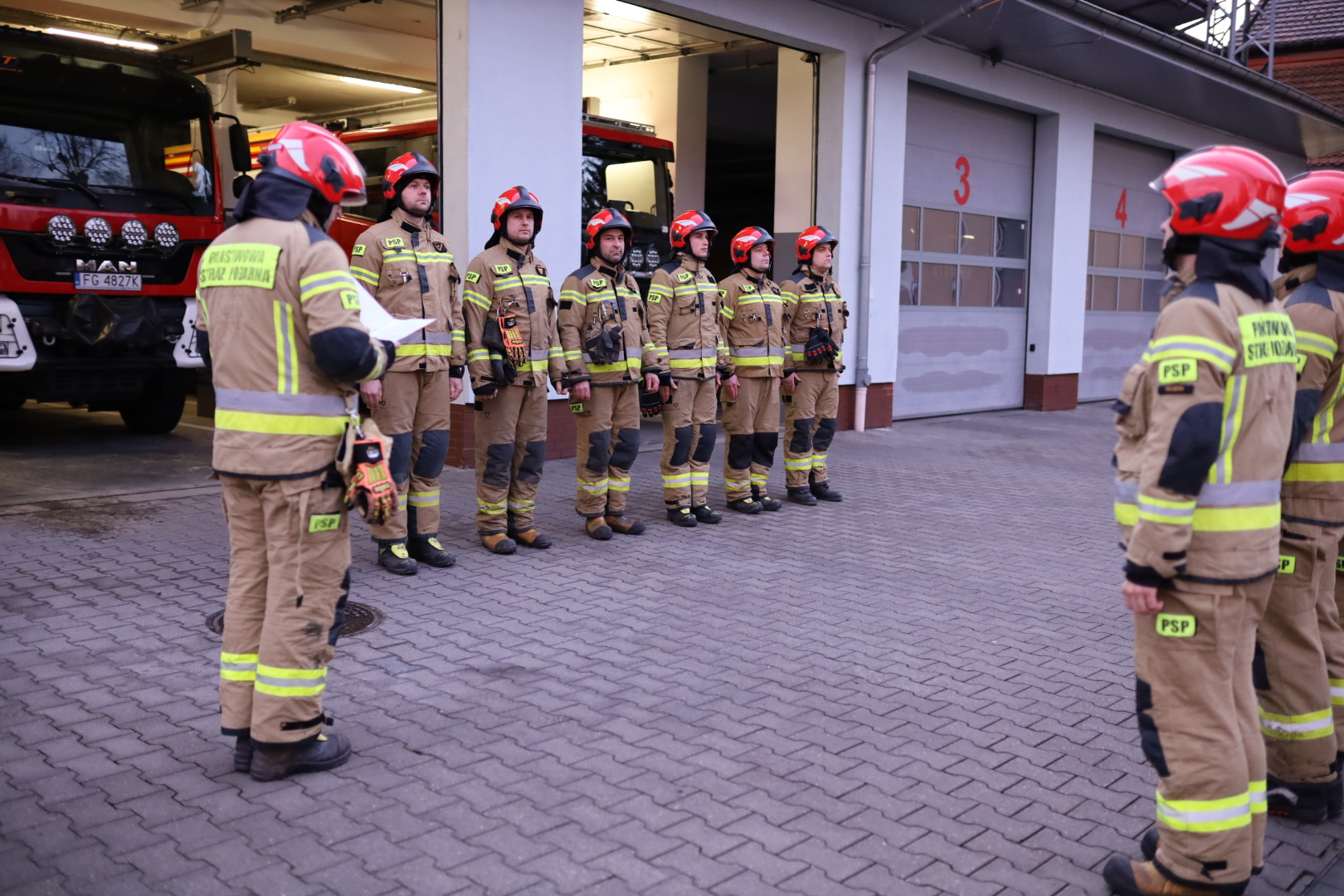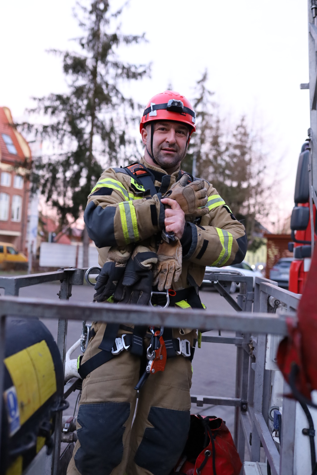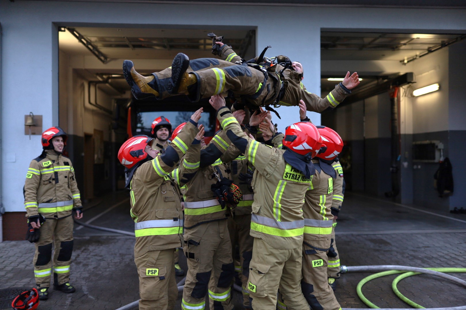 W dniu 30 stycznia br. nasz kolega Tadeusz zakończył służbę w naszej formacji. Ostatni raz uczestniczył w zmianie służby, ostatni raz usłyszał komendy "służba zdana, służba przyjęta, służba rozpoczęta" i ostatni raz uderzył w dzwonek oznajmiający zmianę służby. Jedną z pasji Tadeusza było ratownictwo wysokościowe, dlatego koledzy zorganizowali mu pożegnanie w miejscu, które w czasie całej jego służby było Mu najbardziej bliskie, czyli..... w koszu podnośnika i oczywiście..... mokre pożegnanie.
