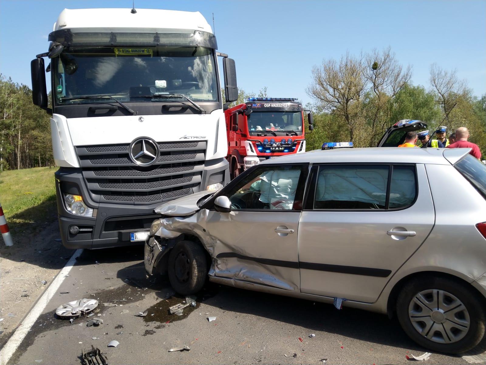Po dojeździe na miejsce zdarzenia zastępu OSP Słońsk zastano dwa samochody osobowe i jeden ciężarowy po kolizji. Na miejscu znajdował się ZRM który udzielił pomocy medycznej osobom poszkodowanym. Jeden pojazd VW Golf znajdował się poza pasem drogowym, samochód osobowy Skoda Fabia wraz z ciężarowym Mercedesem Actros znajdowały się na jezdni i blokowały przejazd. Skrzyżowanie zostało całkowicie zablokowane na czas prowadzenia działań. Działania zastępów polegały na zabezpieczeniu miejsca zdarzenia, pomocy dla ZRM, oraz zabezpieczeniu lądowania i startowania LPR.