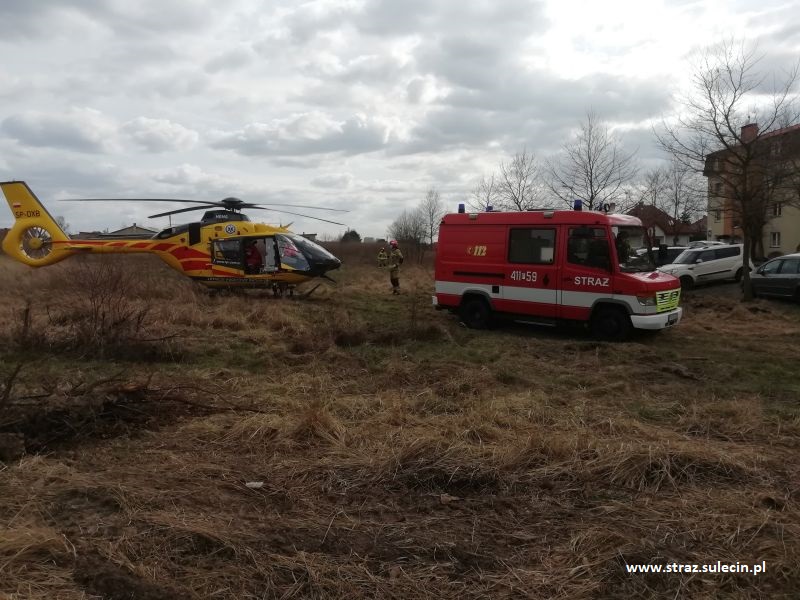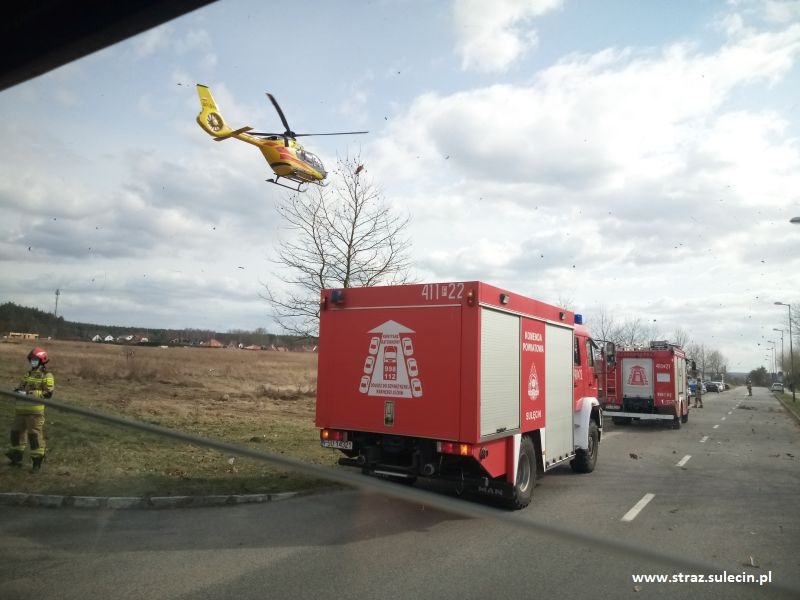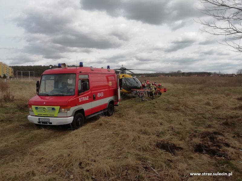 Z uwagi na brak zespołu PRM do działań zostały zadysponowane zastępy z JRG Sulęcin. Działania polegały na udzieleniu kwalifikowanej pierwszej pomocy dla poszkodowanego oraz zabezpieczeniu lądowiska dla śmigłowca. Ze względu na znaczną odległość miejsca zdarzenia od miejsca lądowania, ratownicy przetransportowali zespół Lotniczego Pogotowia Ratunkowego na miejsce zdarzenia a następnie poszkodowany został przewieziony karetką JRG Sulęcin pod opieką medyków do śmigłowca. |