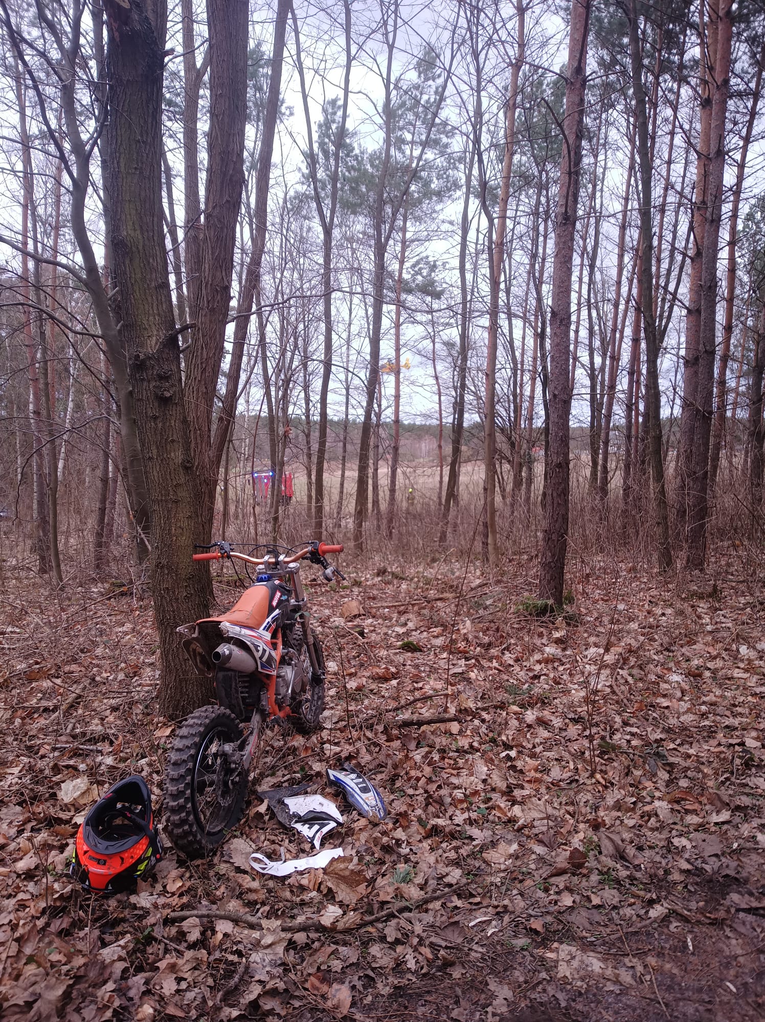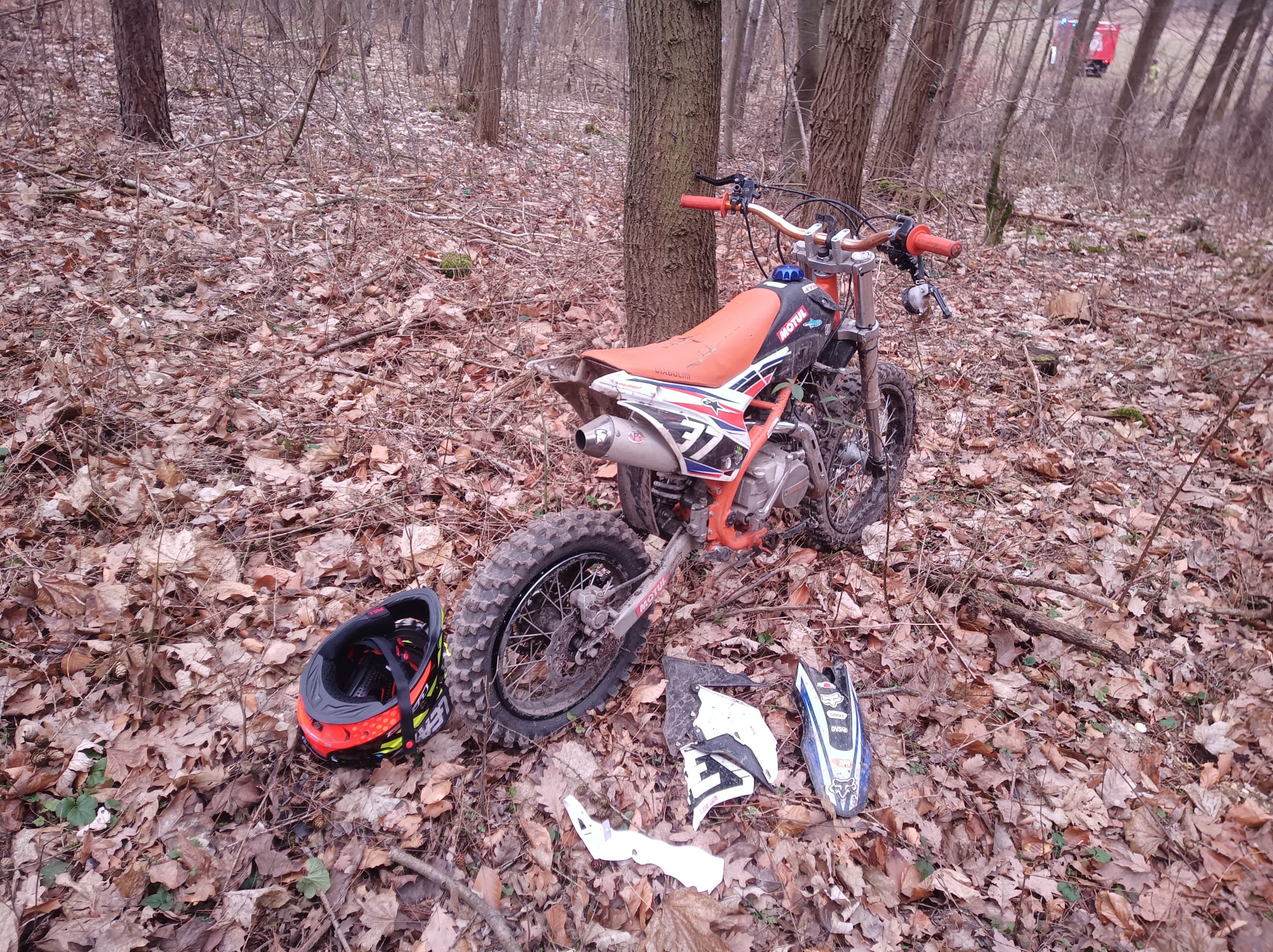 Zastępy zostały zadysponowane do zdarzenia, w którym motocyklista jadąc leśną drogą motocyklem typu "Cross" uderzył w drzewo. Po dojeździe na miejsce zdarzenia zastano poszkodowanego mężczyznę leżącego na ziemi, ze zdjętym kaskiem, z ranami twarzy i krwiakiem na policzku, przytomnego, lecz z utrudnionym kontaktem logicznym. Poszkodowanemu została udzielona kwalifikowana pierwsza pomoc przez ratowników OSP i PSP, następnie został on przekazany zespołowi ratownictwa medycznego. W celu przetransportowania poszkodowanego do szpitala, zadysponowane zostało lotnicze pogotowie ratunkowe. W działaniach udział brały zastępy z OSP Glisno, OSP Lubniewice i JRG Sulęcin.