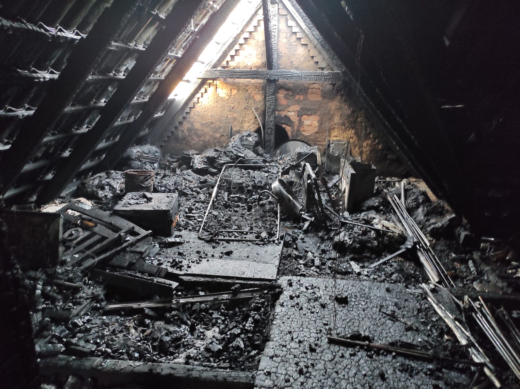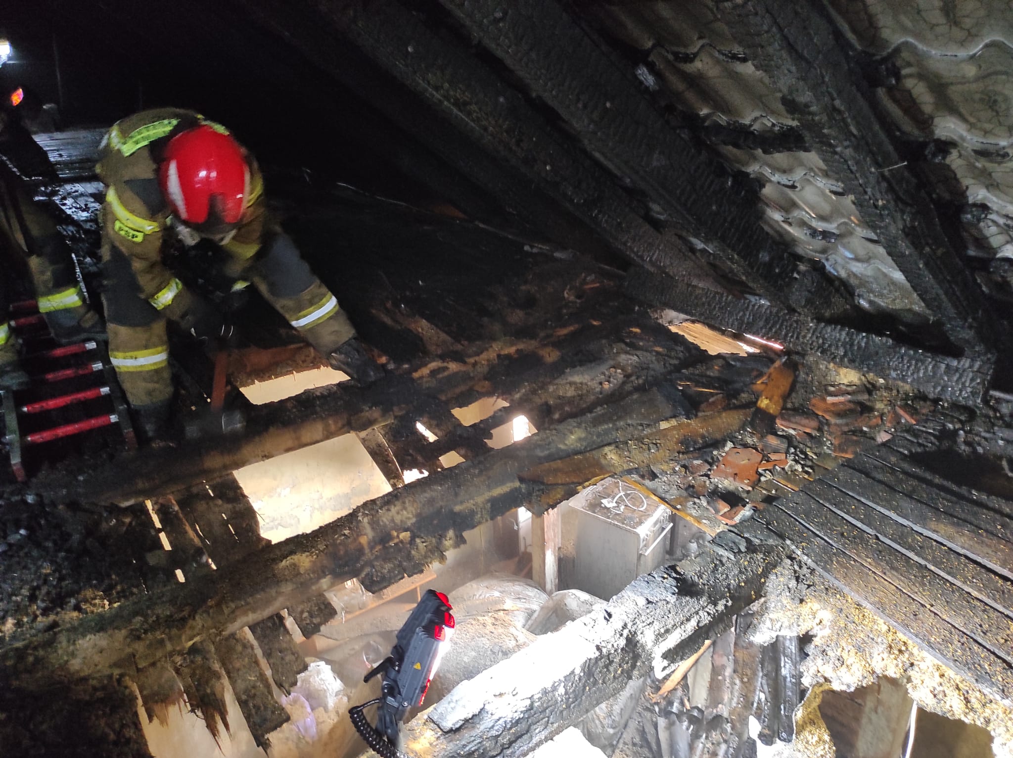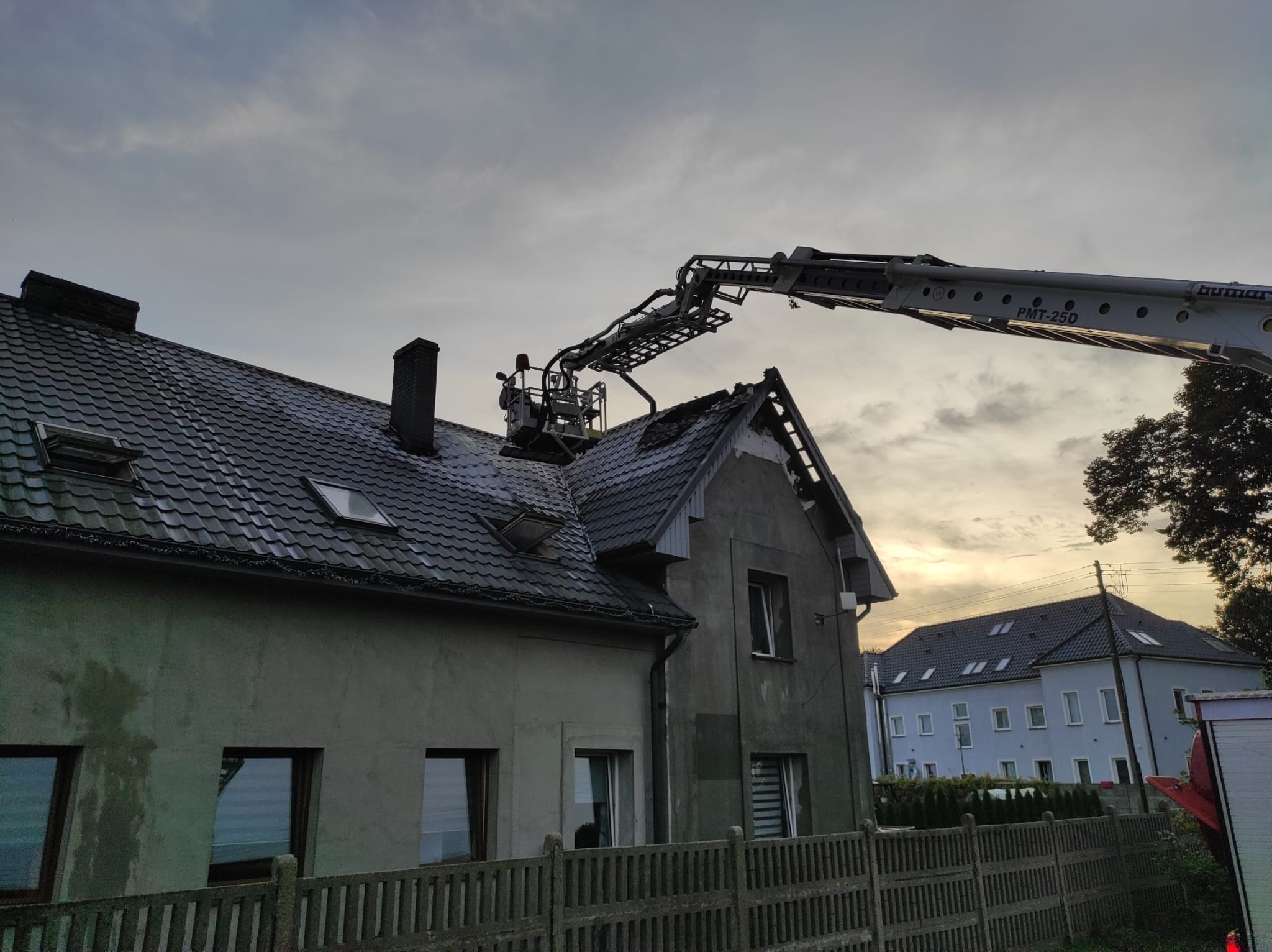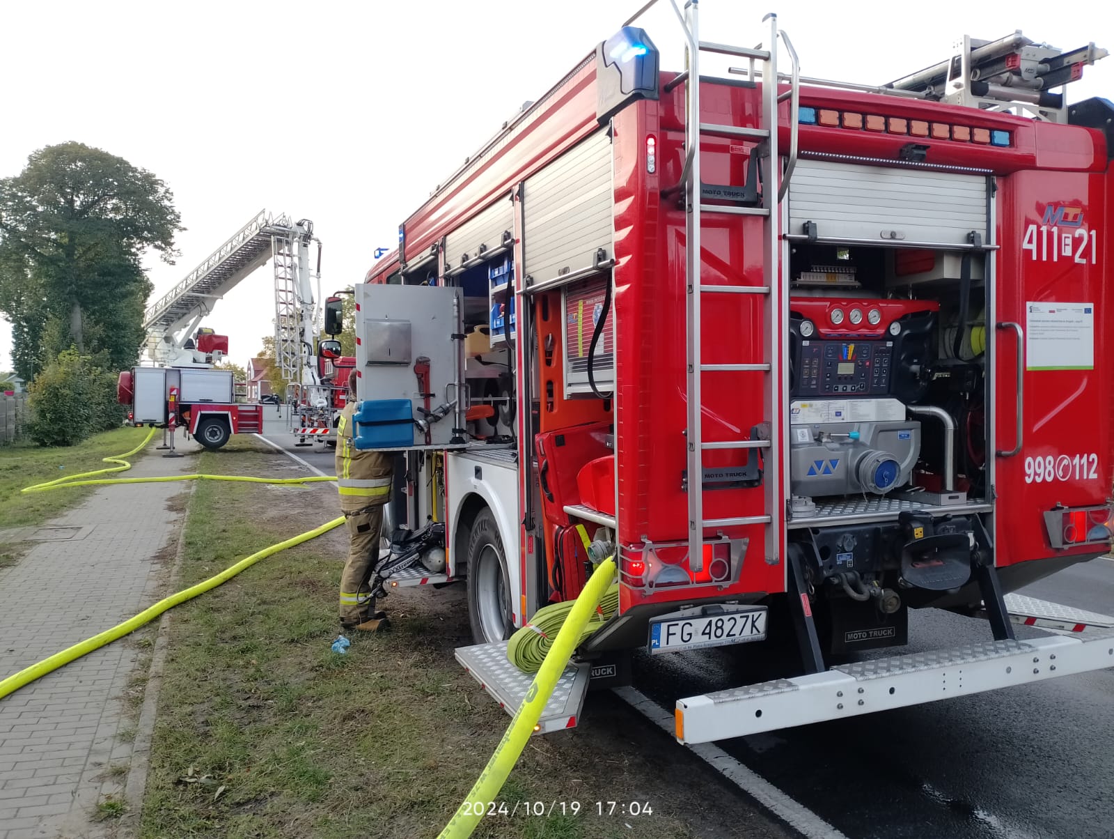 W dniu 19 października br. zastępy PSP i OSP zostały zadysponowane do pożaru budynku wielorodzinnego w miejscowości Słońsk. W chwili dojazdu pierwszych zastępów pożarem objęte było poddasze budynku, spod całej powierzchni połaci dachowej wydobywały się kłęby dymu, a miejscami również płomienie. Lokatorzy opuścili budynek przed przybyciem zastępów straży pożarnej. Działania zastępów polegały na zabezpieczeniu miejsca zdarzenia i podaniu prądów gaśniczych wprowadzonych do wnętrza budynku bezpośrednio na objęte pożarem poddasze oraz podaniu prądów gaśniczych z zewnątrz z koszy podnośników, przez wycięte w połaci dachowej otwory i lance gaśnicze. W celu ugaszenia pożaru prowadzone były również prace rozbiórkowe wew. budynku. W skutek pożaru spaleniu uległa część konstrukcji dachowej oraz część stropu na poddaszu, ponadto w wyniku przepalenia się stropu zniszczeniu uległa również część mieszkania znajdującego się bezpośrednio pod miejscem pożaru. W działaniach udział brały zastępy z OSP Lemierzyce, OSP Słońsk, OSP Krzeszyce, JRG Kostrzyn nad Odrą, JRG Sulęcin. Do działań zadysponowany został również samochód specjalny ze sprzętem ochrony układu oddechowego (SPGaz) z KW PSP w Gorzowie Wlkp.