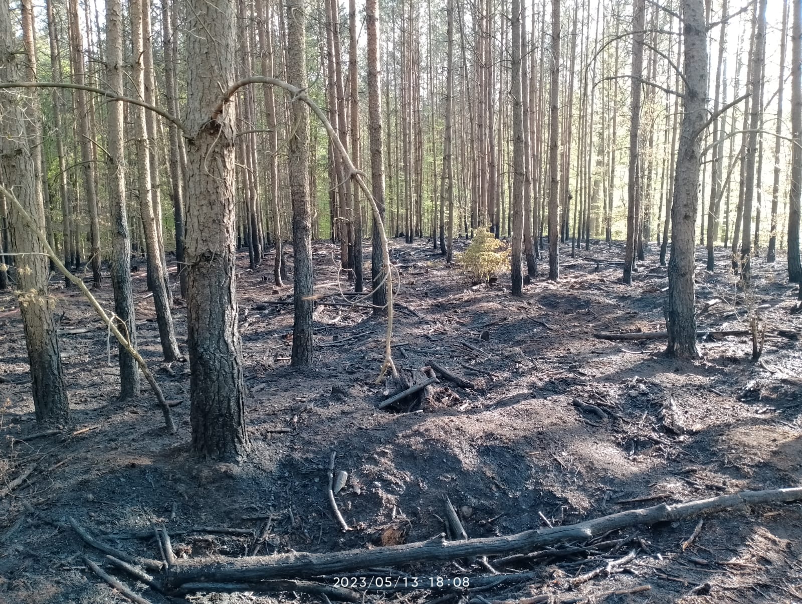 Nadleśnictwo Świebodzin, Leśnictwo Toporów, oddział 233b, ścioła w lesie sosnowym 31 lat. Po dojeździe pierwszych zastępów (OSP Torzym, OSP Koryta) zastano płomienie po obwodzie pożaru na wysokość ok. 1 metra. Zamiarem taktycznym KDR było zabezpieczenie miejsca zdarzenia oraz ugaszenie pożaru. Zamiar KDR realizował poprzez podanie dwóch prądów wody na obwód pożaru hamując jego rozprzestrzenianie się liniowe, wyznaczenie punktu czerpania wody na rzece Pliszce i dogaszeniu całego obszaru dodając jeszcze jeden prąd wody. W działaniach udział brały zastępy z OSP Torzym, OSP Koryta, OSP Toporów, OSP Ołobok, OSP Bytnica, OSP Radomicko i JRG Sulęcin.