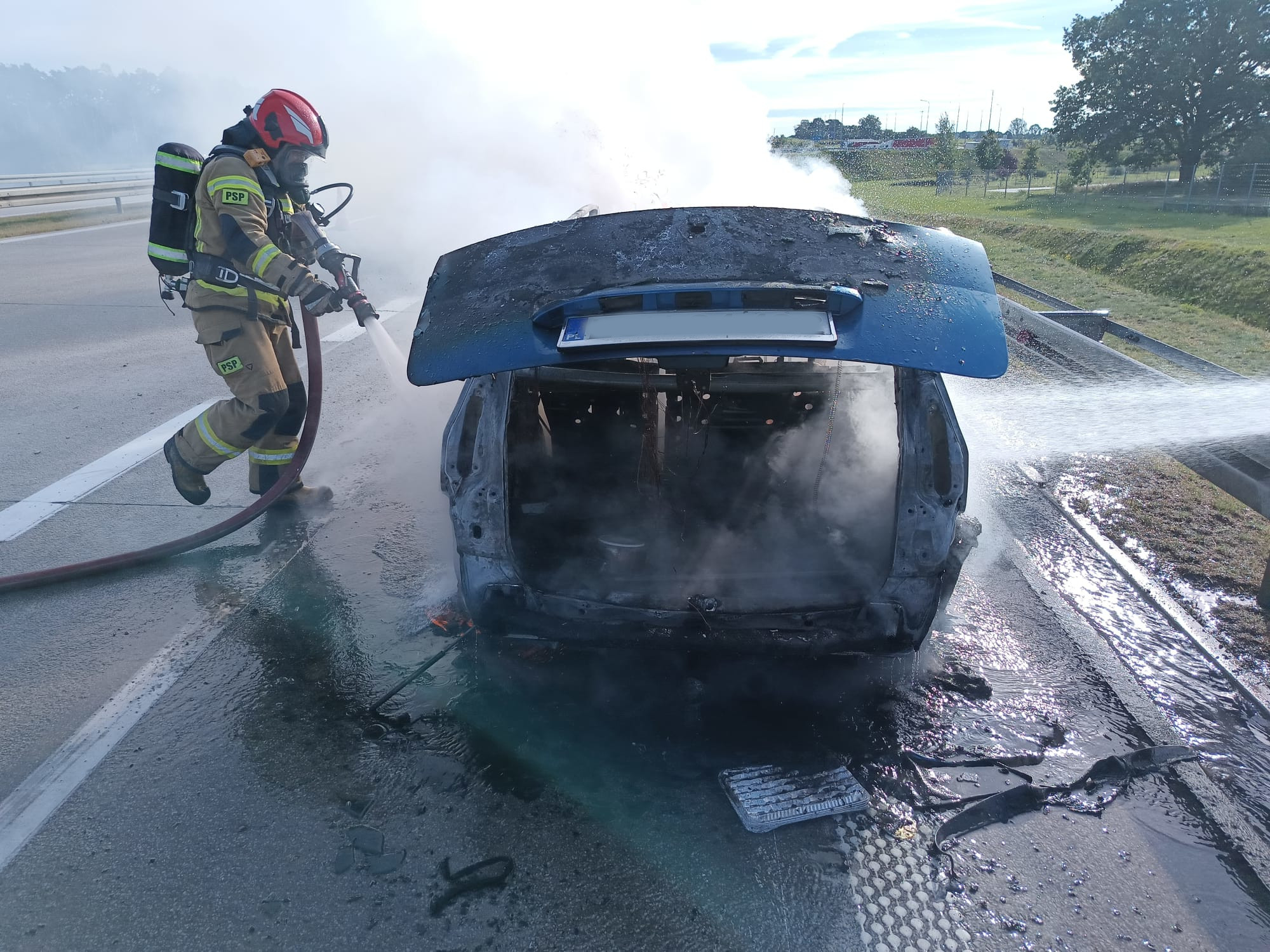 Po przyjeździe zastępów na miejsce zdarzenia zastano pojazd marki Renault stojący w płomieniach na pasie zjazdowym z autostrady. Na miejscu obecne były służby utrzymania autostrady. Kierowca samochodu znajdował się poza pojazdem. Nie odniósł on obrażeń. Działania zastępów polegały na zabezpieczeniu miejsca zdarzenia i ugaszeniu palącego się pojazdu. W działaniach udział brały zastępy z OSP Torzym i JRG Sulęcin.