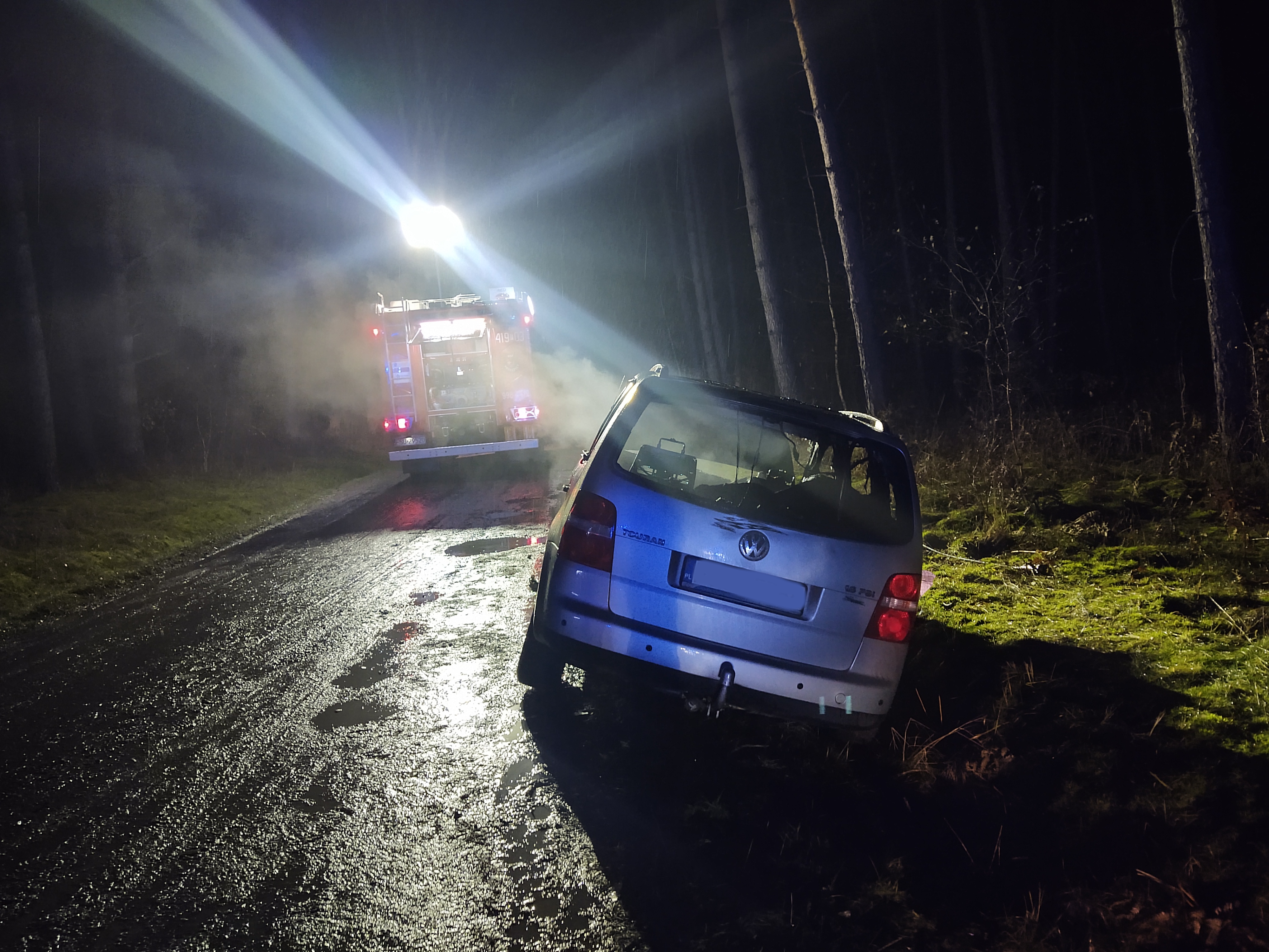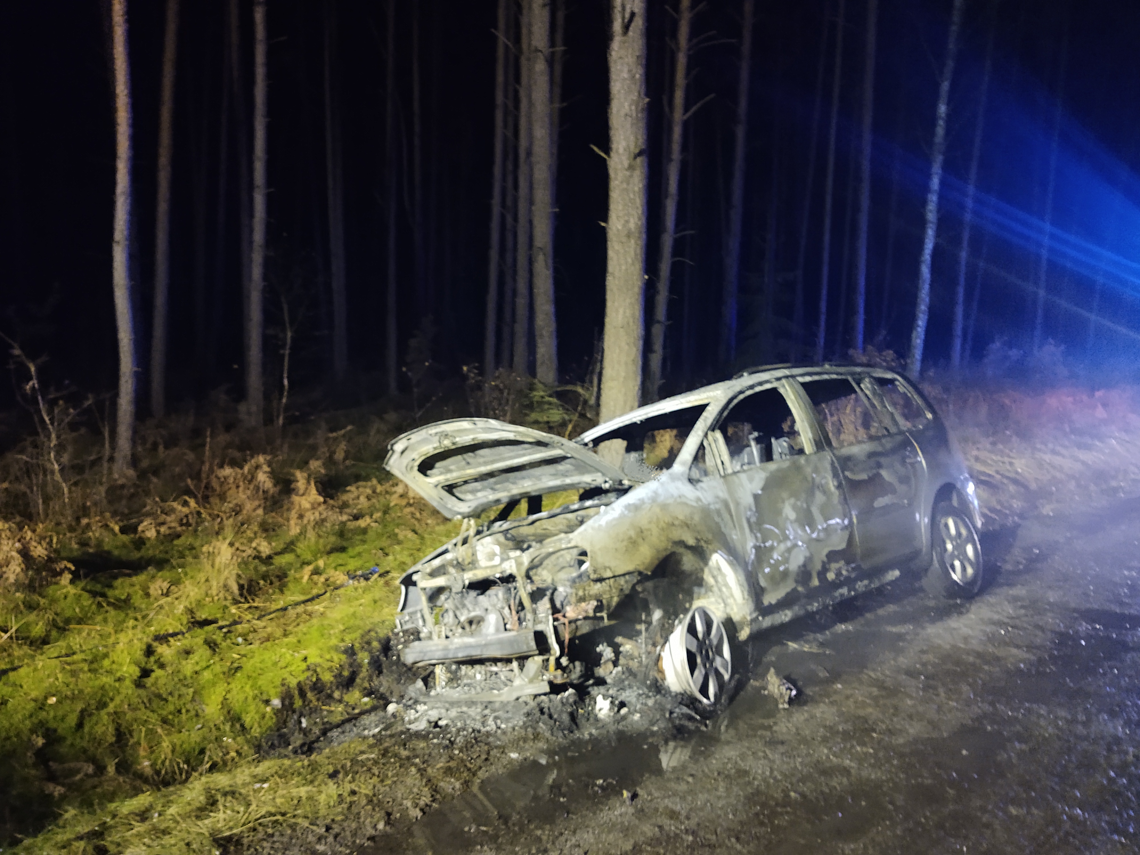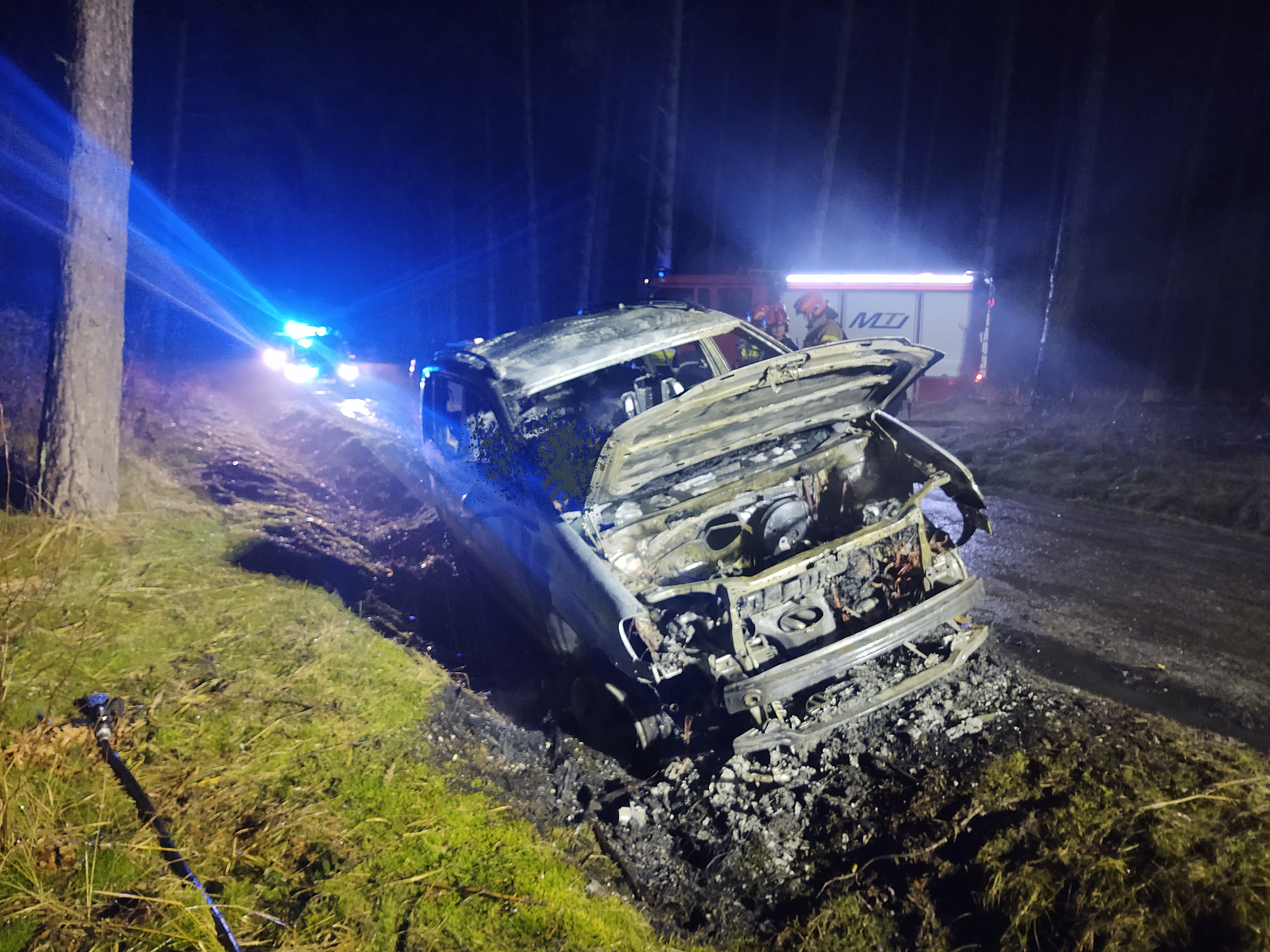 19 grudnia po godzinie 17:00 do SKKP w Sulęcinie wpłynęło zgłoszenie o pożarze samochodu osobowego na leśnej drodze szutrowej w rejonie drogi wojewódzkiej nr 134. Po dojeździe na miejsce zdarzenia zastępów JOP zastano pojazd osobowy objęty pożarem. Działania zastępów polegały na zabezpieczeniu miejsca zdarzenia i podaniu jednego prądu gaśniczego w natarciu na palący się pojazd. W trakcie prowadzonych działań ujawniono wewnątrz pojazdu spalone ludzkie zwłoki znajdujące się na miejscu pasażera. W celu wykluczenia możliwości wystąpienia innych osób poszkodowanych w zdarzeniu, przeszukano w promieniu ok. 200 m teren wokół miejsca zdarzenia oraz zadysponowano grupę "dronową" z KP PSP w Słubicach celem zwiększenia przeszukiwanego obszaru. Na miejsce zdarzenia zadysponowana została grupa z Wydziału Dochodzeniowo-Śledczego Policji wraz z biegłym z zakresu pożarnictwa i Prokuratorem.