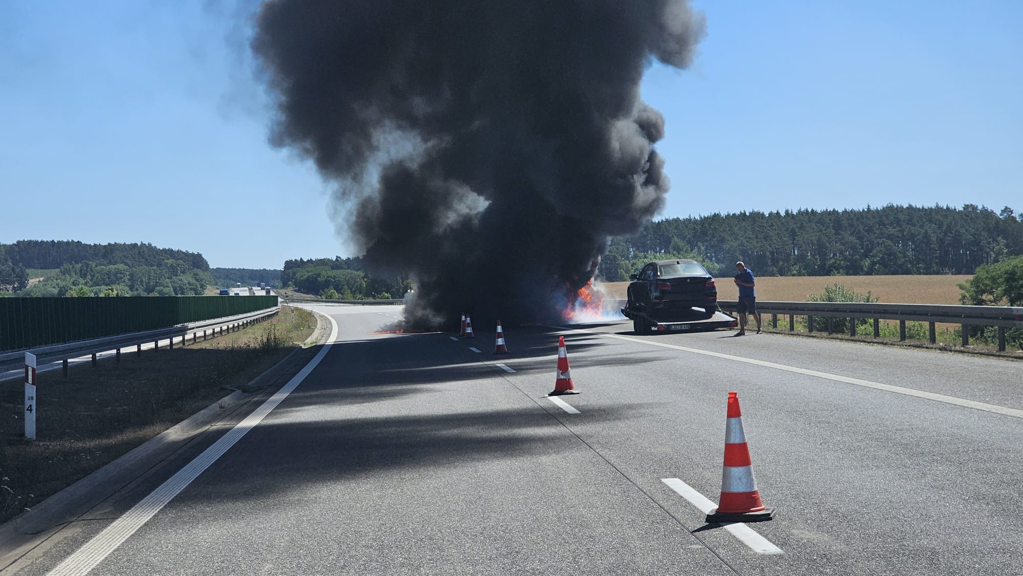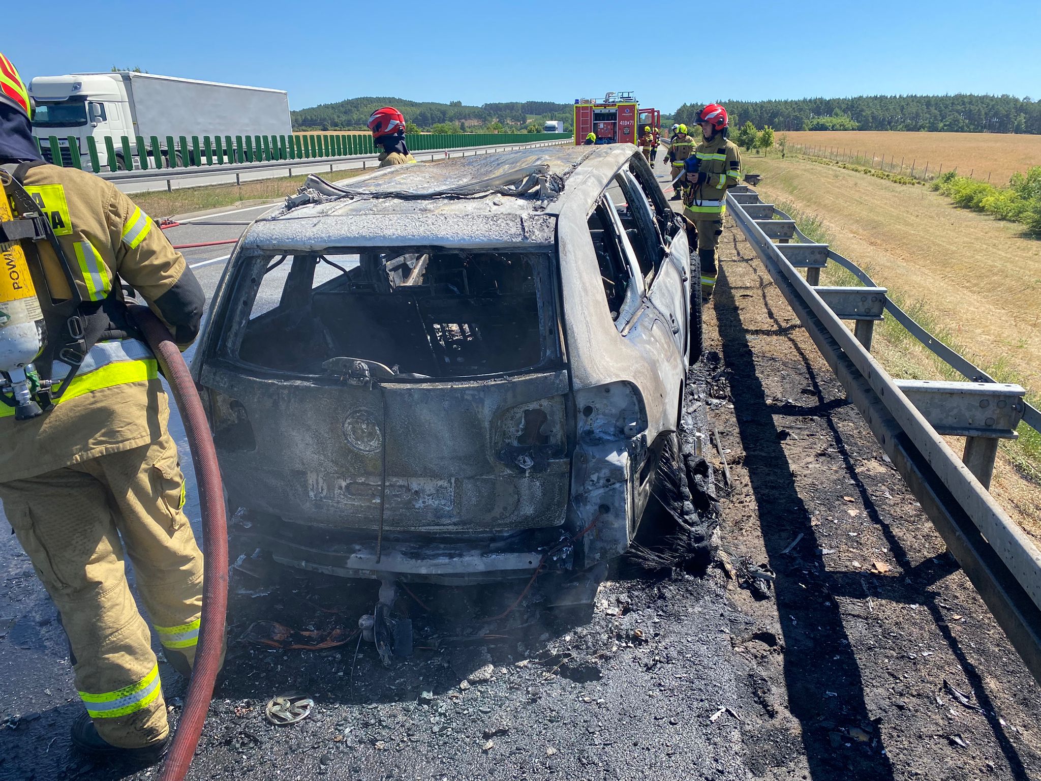 Pożar samochodu na autostradzie