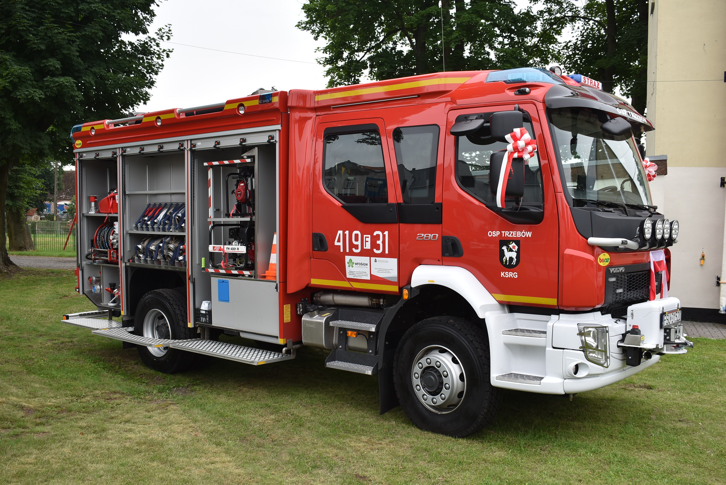 Przekazanie nowego samochodu gaśniczego dla OSP Trzebów