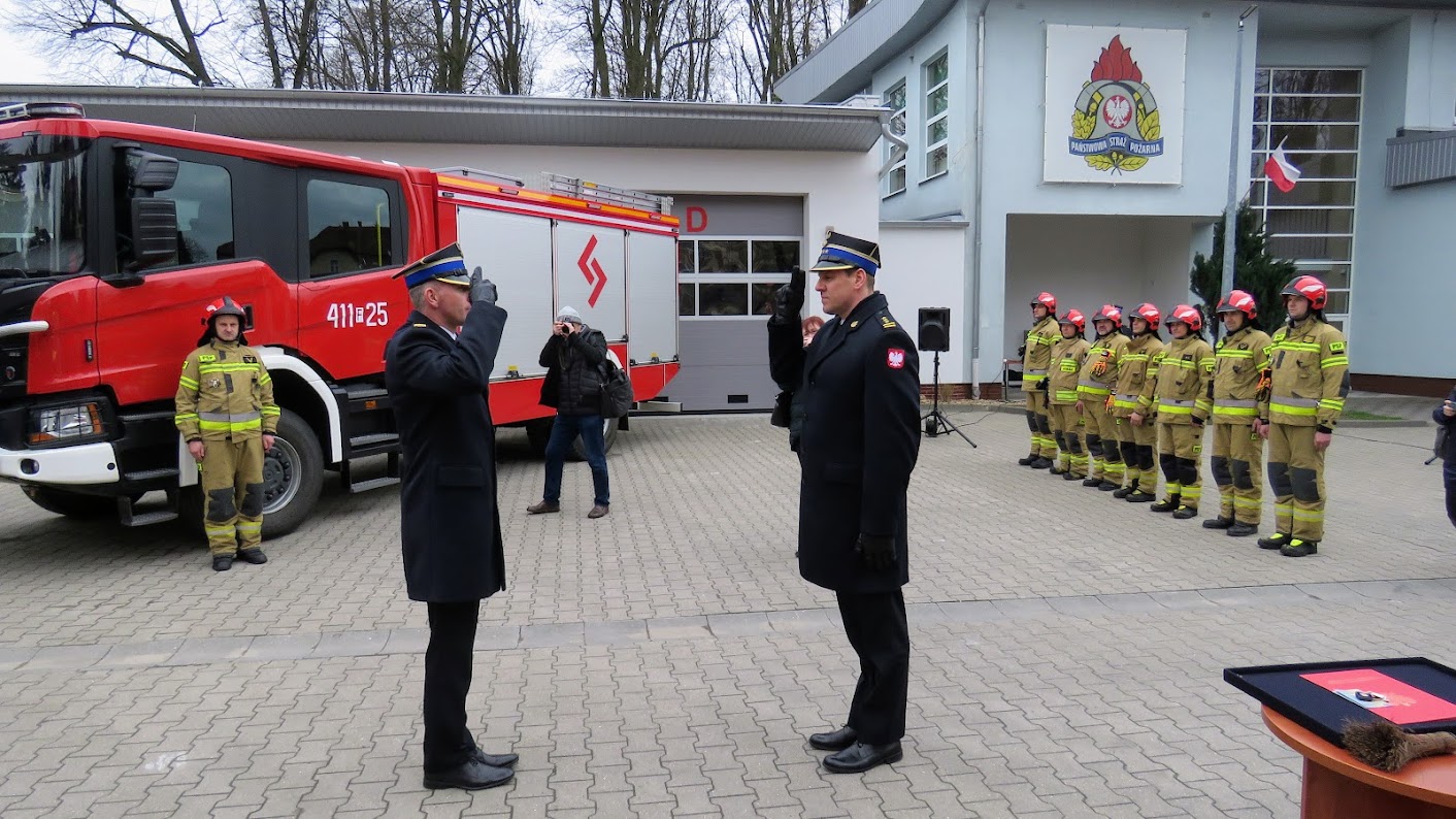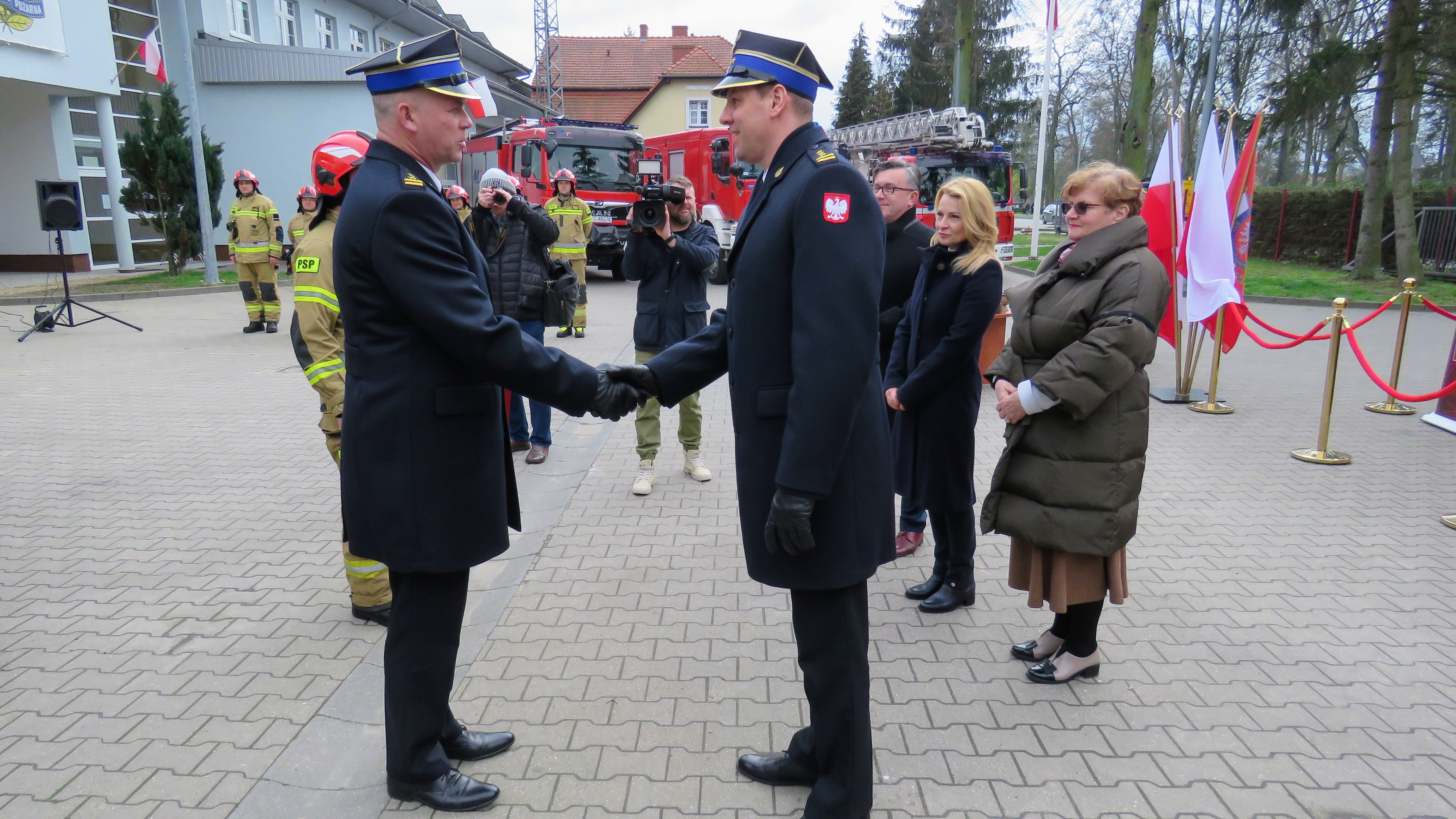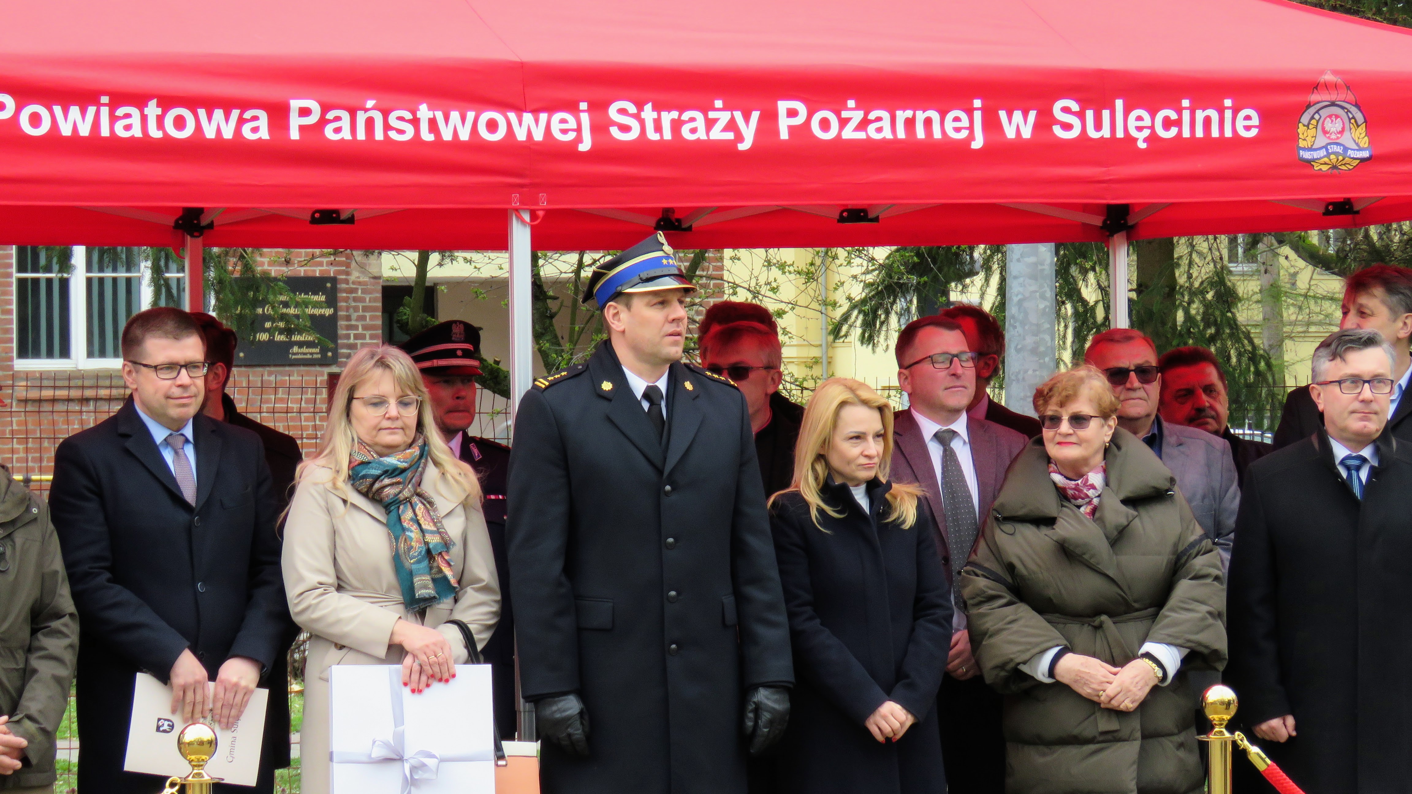 Lubuski Komendant Wojewódzki st. bryg. Patryk Maruszak wraz z Wicewojewodą Lubuskim Olimpią Tomczyk-Iwko, Posłanką na Sejm RP Elżbietą Płonką oraz Prezesem Zarządu Wojewódzkiego Funduszu Ochrony Środowiska i Gospodarki Wodnej w Zielonej Górze Mariuszem Herbutem, wręczył akt przekazania pojazdu Komendantowi Powiatowemu PSP w Sulęcinie bryg. Waldemarowi Koniecznemu.