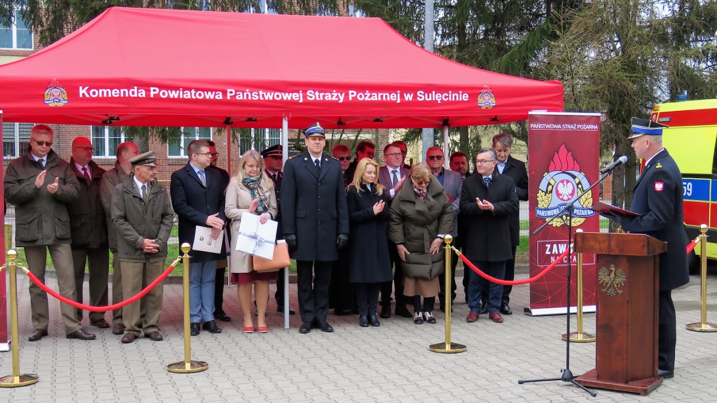 18 kwietnia br., odbyła się uroczystość przekazania ciężkiego samochodu ratowniczo-gaśniczego oraz stanowisk garażowych dla Komendy Powiatowej Państwowej Straży Pożarnej w Sulęcinie.