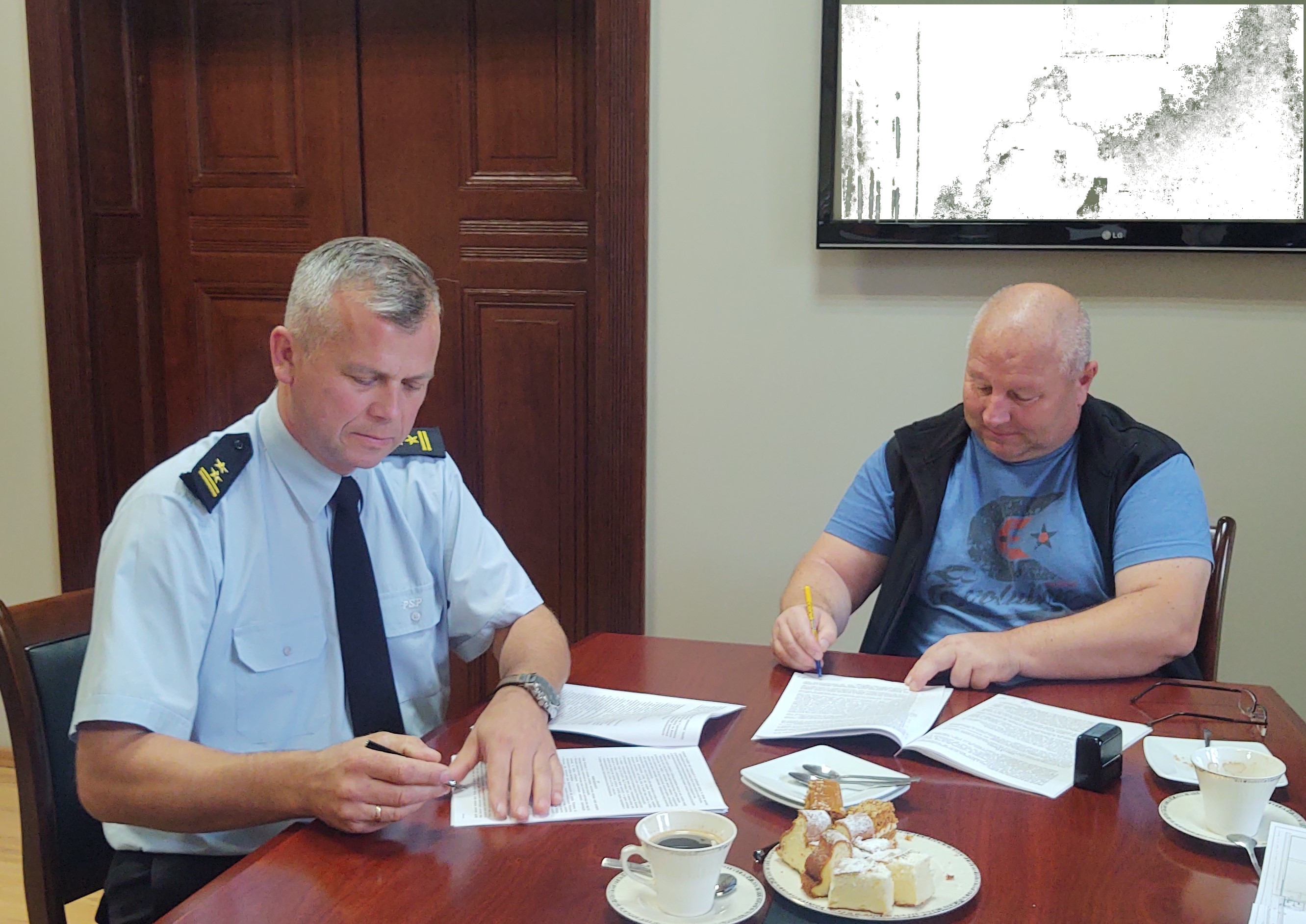 W dniu dzisiejszym w Komendzie Powiatowej PSP w Sulęcinie została podpisana umowa z firmą RENAGO na przebudowę wraz z rozbudową istniejącego budynku straży pożarnej o łącznik komunikacyjny oraz budynek garażowy dla 4 stanowisk postojowych”