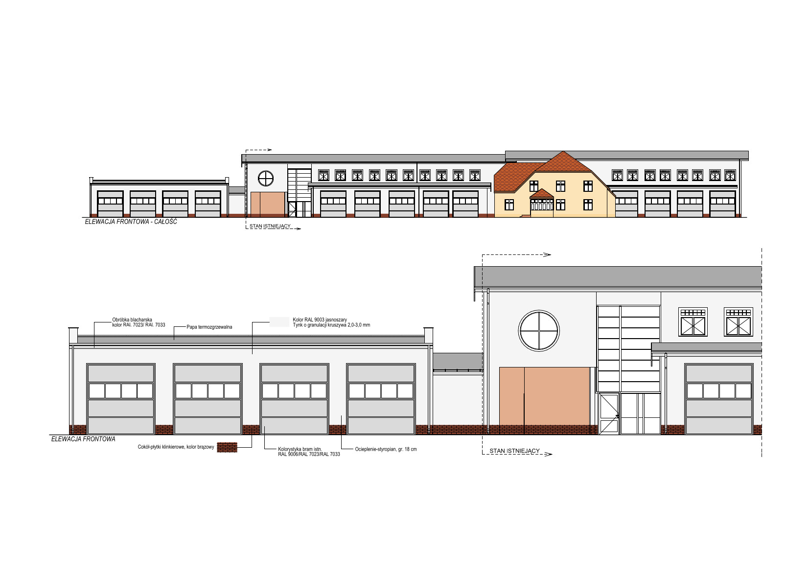 Część dobudowywana pozostanie spójna architektonicznie z pozostałą zabudową a jej funkcje zapewnią racjonalne wykorzystanie przestrzeni. Dostosowanie do istniejącej linii zabudowy garaży zapewni odpowiedniej wielkości plac manewrowy przed budynkiem, umożliwiając wygodne parkowanie pojazdów jak również rozładunek kontenerów technicznych.