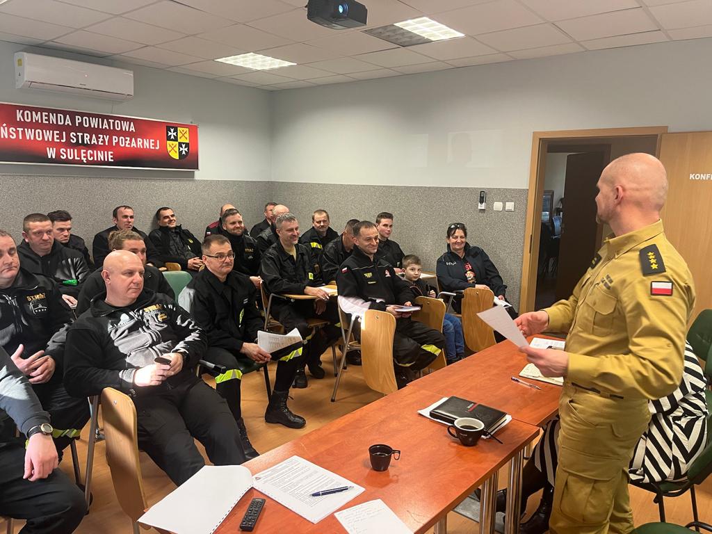 W środę 15 marca br., w Komendzie Powiatowej Państwowej Straży Pożarnej w Sulęcinie odbyło się spotkanie robocze z przedstawicielami jednostek OSP z terenu powiatu sulęcińskiego. Z ramienia Komendy Powiatowej w spotkaniu uczestniczyli z-ca Komendanta Powiatowego PSP w Sulęcinie - st. kpt. Rafał Sobczak, z-ca naczelnika wydziału - kpt. Daniel Naranowicz oraz inspektor wydziału kwatermistrzowskiego - Pani Karolina Sawko. Na spotkaniu poruszono tematy z bieżącej działalności jednostek w zakresie spraw operacyjnych oraz szkoleniowych. Omówiono również zasady współpracy OSP z KP PSP w Sulęcinie, system rozdziału dotacji budżetowych na rozwój jednostek OSP oraz system szkolenia druhów. Przedstawiciele Komendy zapoznali się z bieżącymi i najpilniejszymi potrzebami jednostek OSP oraz problemami z jakimi borykają się druhowie w codziennej działalności.