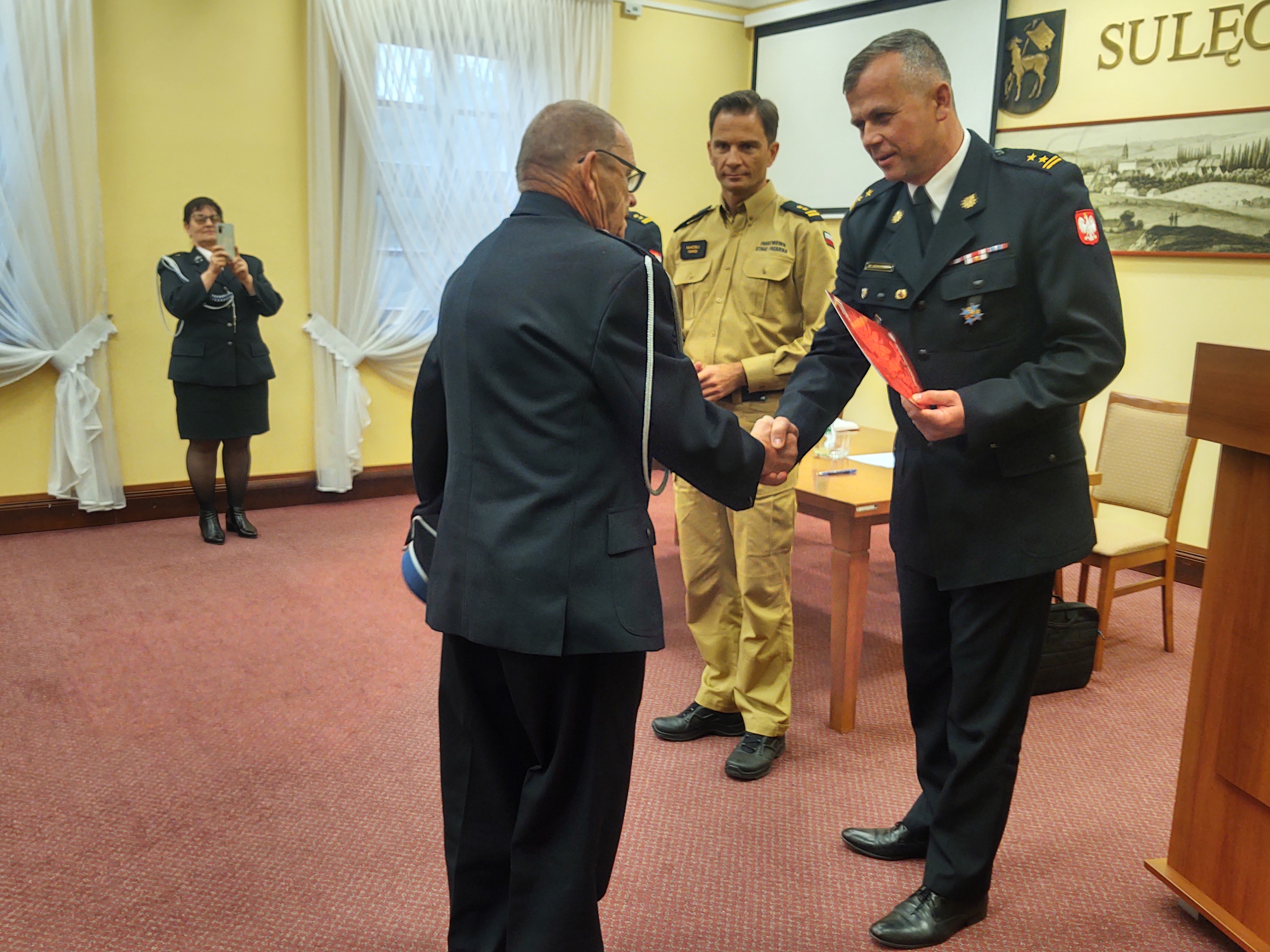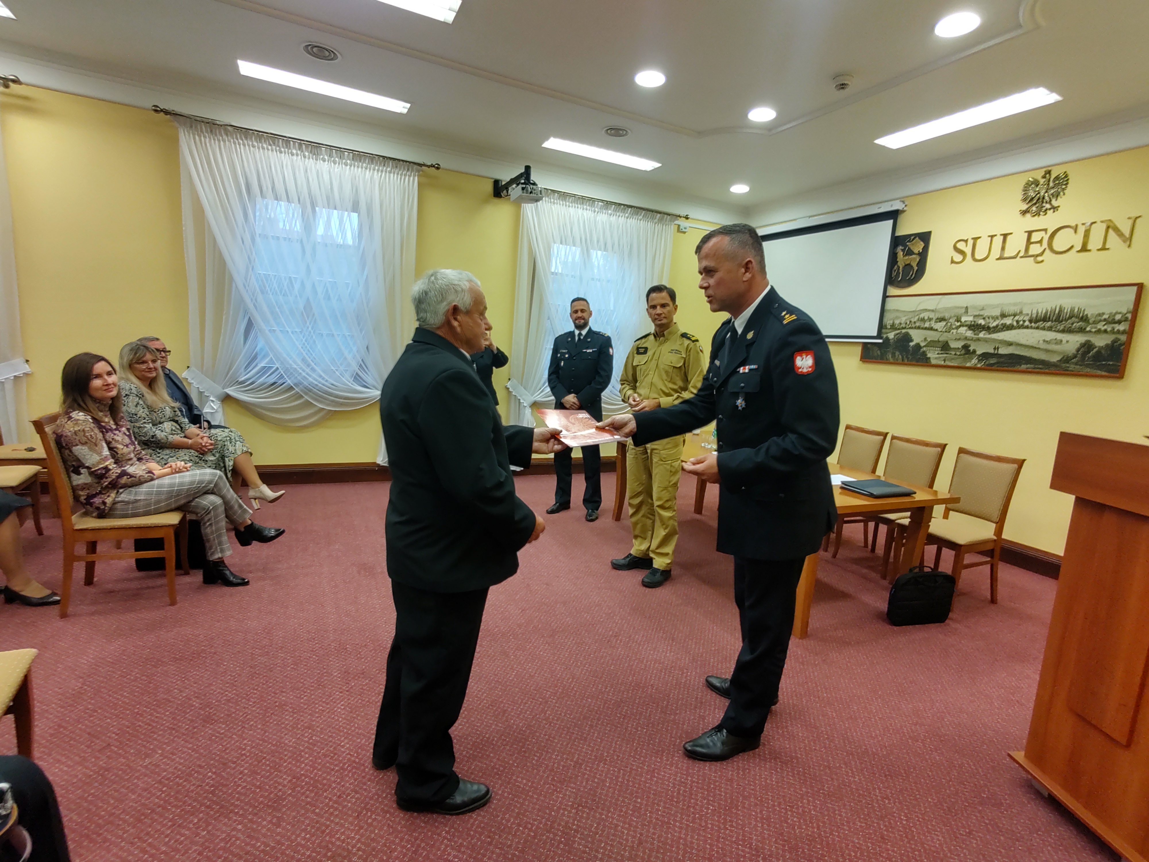 Podczas spotkania Komendant Powiatowy PSP w Sulęcinie - bryg. Waldemar Konieczny w obecności m.in. Zastępcy Lubuskiego Komendanta Wojewódzkiego PSP - bryg. Macieja Iwko i Prezesa Oddziału Powiatowego ZOSP RP – dh Krystiana Koseli, wręczył Decyzje o przyznaniu świadczenia ratowniczego dla strażaków ratowników Ochotniczych Straży Pożarnych z terenu powiatu sulęcińskiego.