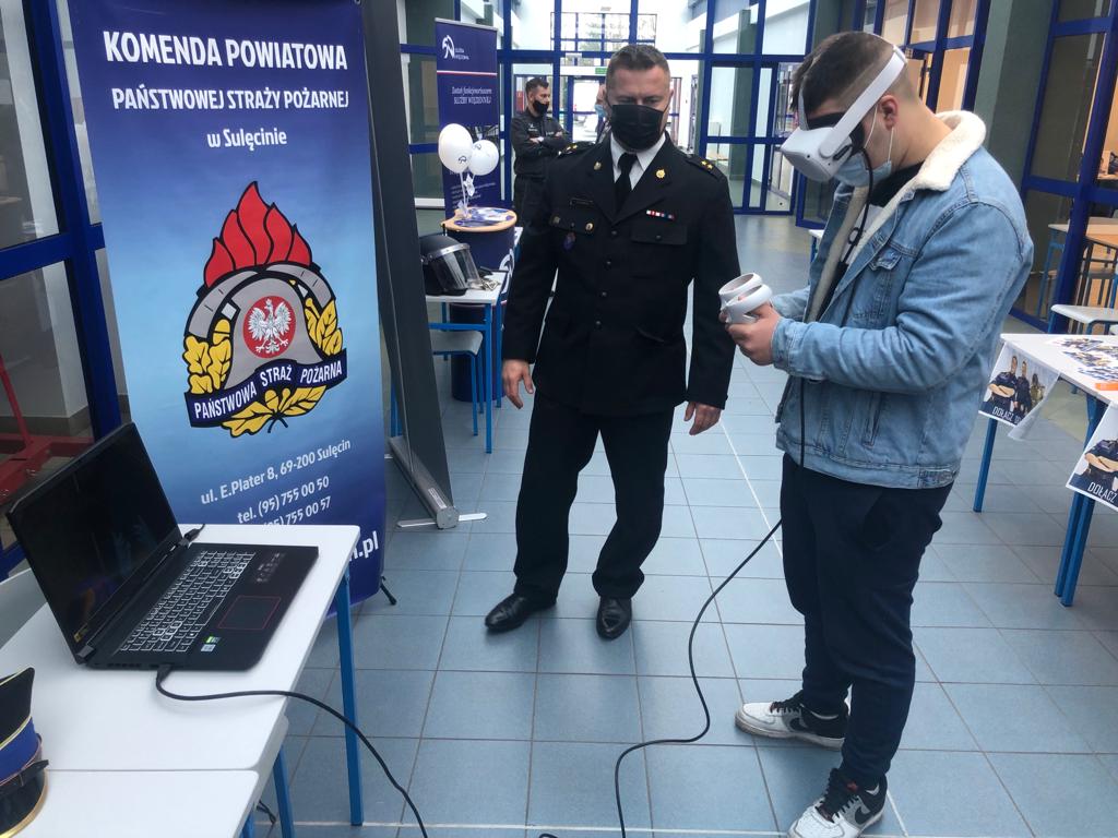 Komenda Powiatowa PSP w Sulęcinie zaprezentowała naszą służbę na Targach Edukacyjnych "Zawodowcy na rynku pracy" które odbyły się w dniu dzisiejszym tj. 2 grudnia 2021r. w Zespole Szkół Licealnych i Zawodowych im Uni Europejskiej w Sulęcinie.