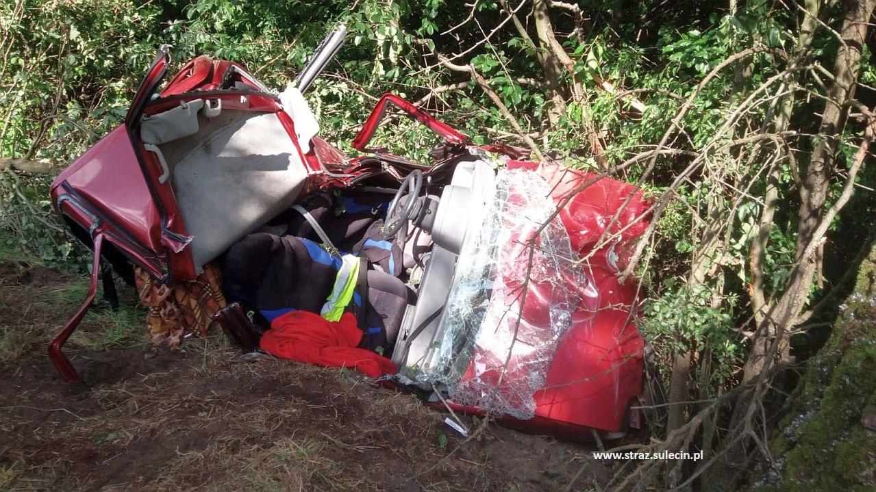 Do SK w Sulęcinie wpłynęło zgłoszenie o wypadku drogowym na drodze pomiędzy Lubinem a Mierczanami. Po przyjeżdzie na miejsce strazy zastano samochód osobowy, który uderzył w drzewo. Działania zastępów polegały na wykonaniu dostępu do poszkodowanego, a następnie ewakuacji go do karetki pogotowia.