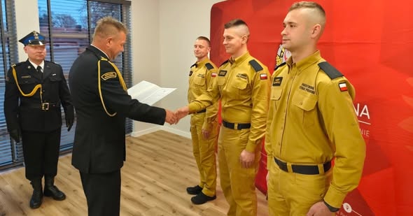 Strażakom Adrianowi, Jakubowi i Marcinowi życzymy powodzenia i witamy w szeregach Państwowej Straży Pożarnej.