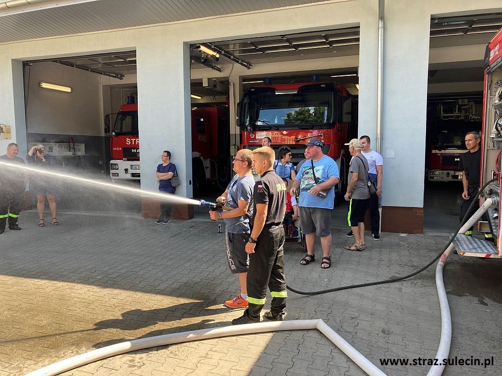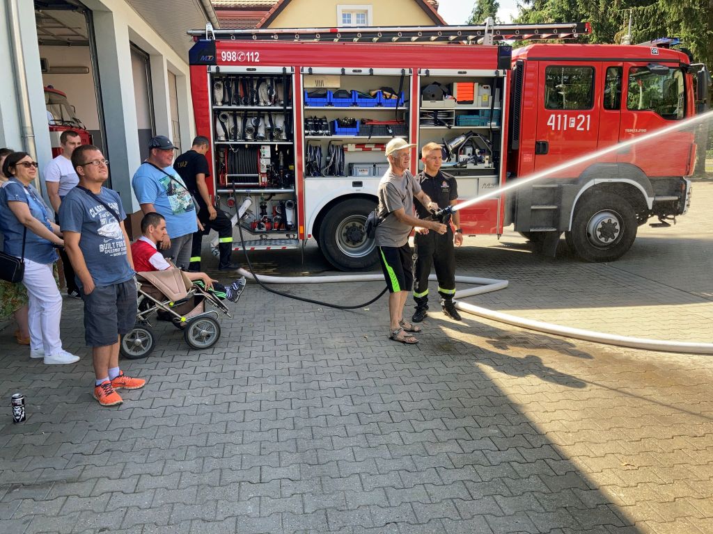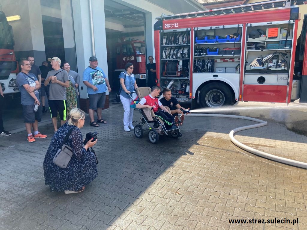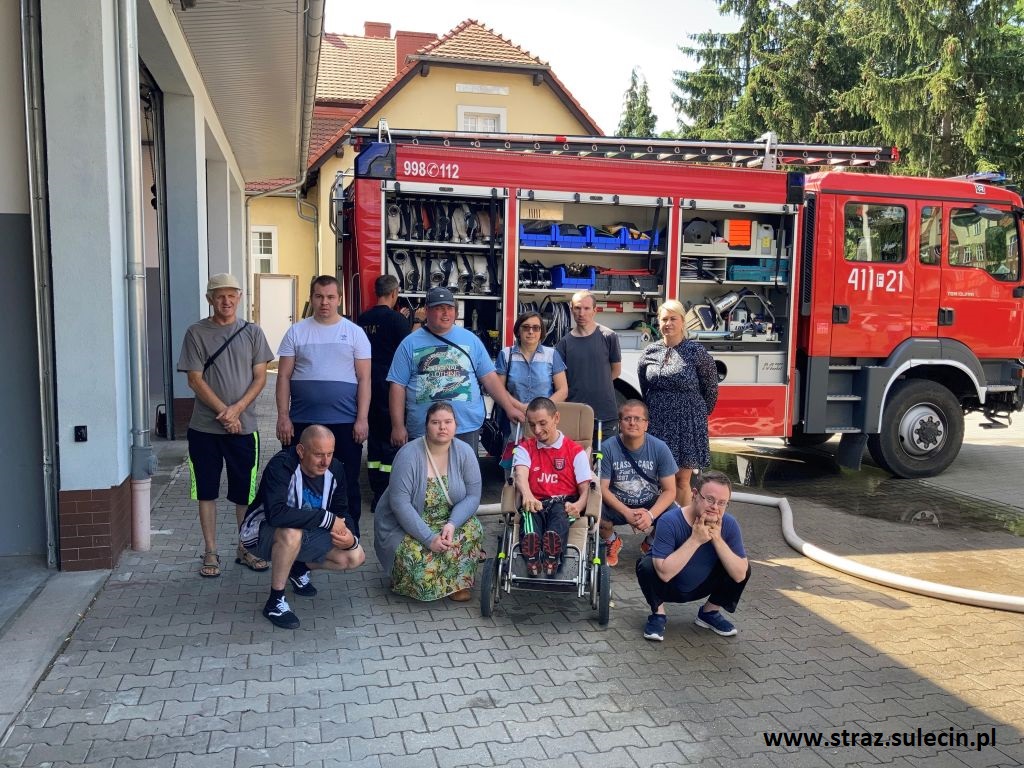 W dniu 30 lipca br. do tutejszej Komendy Powiatowej Państwowej Straży Pożarnej przybyli wraz z wychowawcami podopieczni Środowiskowego Domu Samopomocy w Sulęcinie. Podczas wizyty funkcjonariusze Jednostki Ratowniczo - Gaśniczej zaznajomili ich ze specyfiką pracy strażaka oraz przeprowadzili pokaz sprzetu pożarniczego. Ponadto podopieczni ŚDS mieli okazję wcielić się w rolę strażaka gaszącego pożar poprzez operowanie wodnym prądem gaśniczym z pojazdu pożarniczego. MŻ.