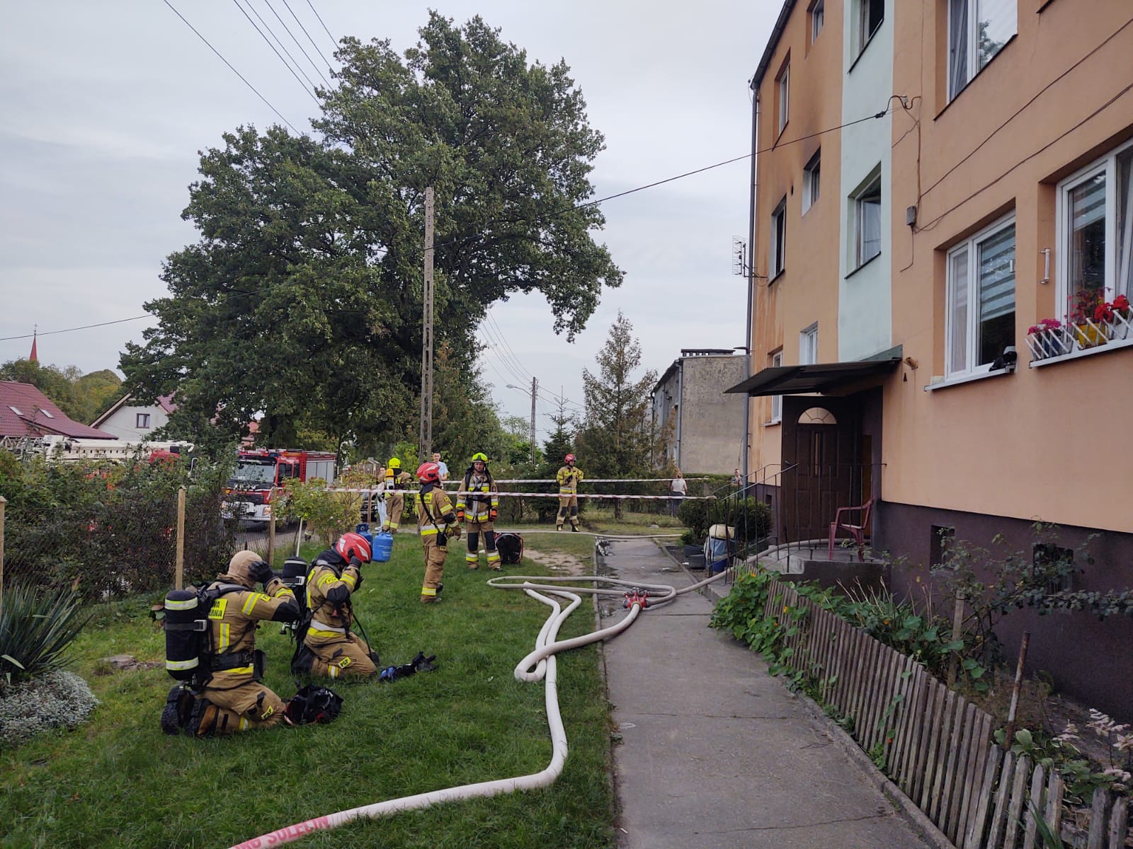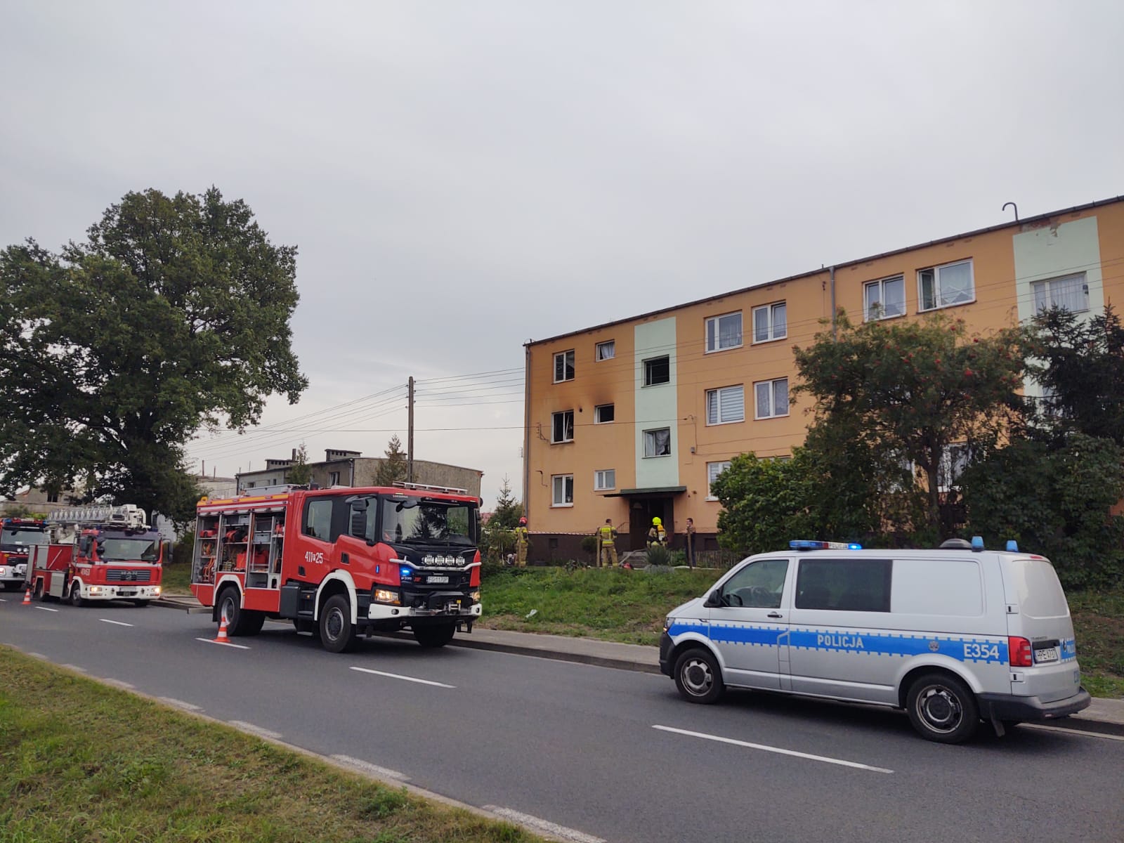 W dniu wczorajszym do SKKP wpłynęło zgłoszenie o wybuchu gazu i pożarze w mieszkaniu w budynku wielorodzinnym w Długoszynie. Zadysponowane zastępy przybyłe na miejsce zdarzenia zastały rozwinięty pożar w mieszkaniu na pierwszym piętrze. Z relacji lokatorów do wybuchu gazu doszło podczas wymiany butli. Pożar szybko objął cały aneks kuchenny połączony z salonem, lokatorzy uciekając przed płomieniami wyskoczyli przez okno, na szczęście nie doznali oni poważniejszych obrażeń. Lokatorzy z sąsiednich mieszkań ewakuowali się z budynku przed przyjazdem służb ratowniczych. Działania zastępów polegały na zabezpieczeniu miejsca zdarzenia, ugaszeniu pożaru w mieszkaniu wprowadzając do niego rotę gaśniczą, udzieleniu pomocy poszkodowanym lokatorom i przekazaniu ich zespołom ratownictwa medycznego. Przed zakończeniem działań, część wyposażenia mieszkania została wyniesiona na zewnątrz i dogaszona, mieszkanie zostało przewietrzone oraz sprawdzone kamerą termowizyjną i miernikami gazowymi. W skutek wybuchu gazu budynek nie został uszkodzony i decyzją Inspektora Nadzoru Budowlanego pozostali lokatorzy budynku mogli wrócić do swoich mieszkań. W działaniach udział brały zastępy z JRG Sulęcin, OSP Trzebów, OSP Torzym.