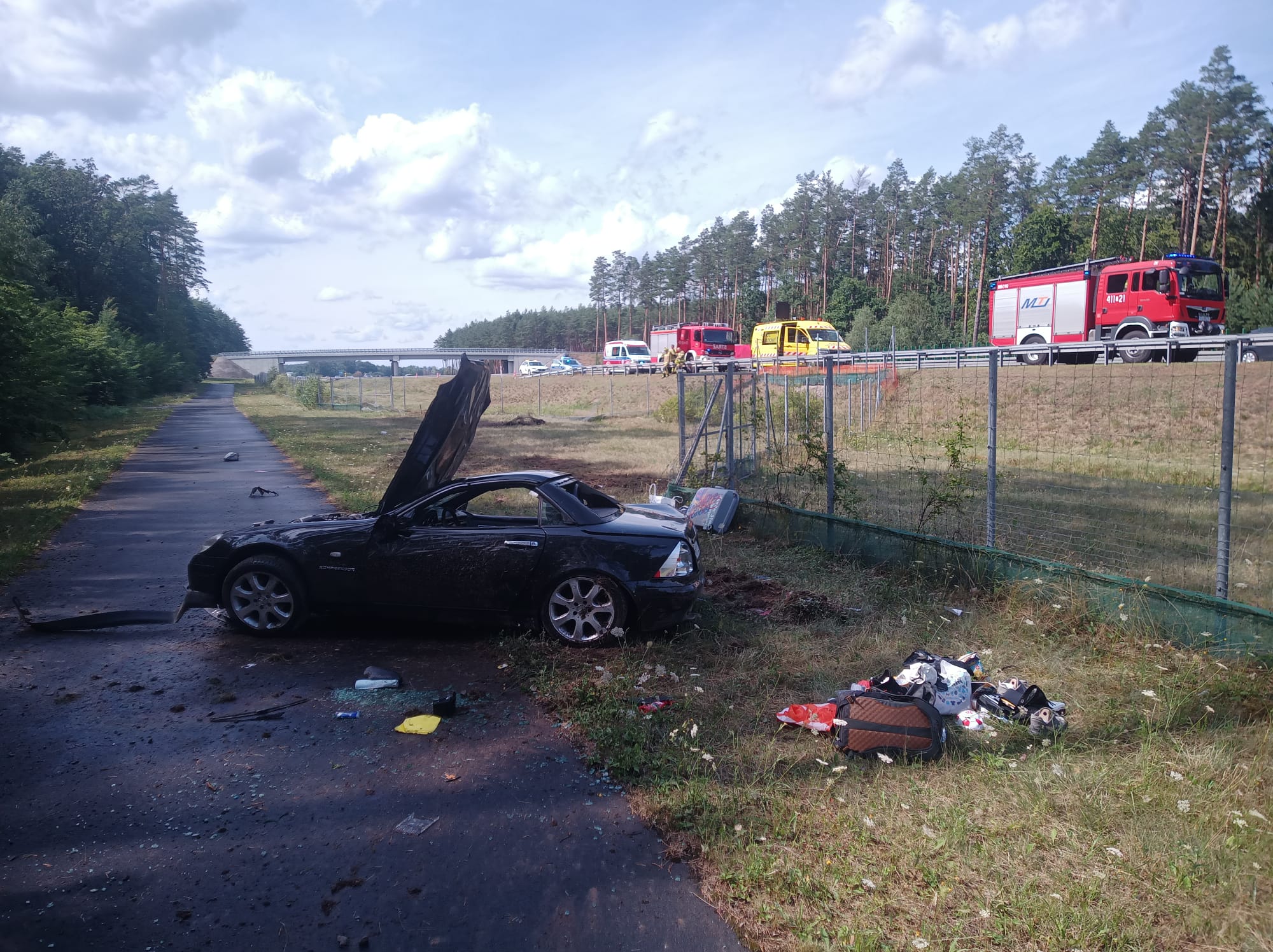 Do zdarzenia doszło na 43 km autostrady w kierunku Warszawy, podczas jazdy w samochodzie osobowym uszkodzeniu uległa opona, kierujący utracił panowanie nad pojazdem zjechał na pas zieleni i dachował. Pojazd zatrzymał się na kołach w odległości ok. 250 m od miejsca gdzie zjechał z jezdni. W wyniku zdarzenia kierujący doznał ogólnych obrażeń ciała i o własnych siłach opuścił pojazd. Przed przybyciem pierwszych zastępów znajdował się już w karetce PRM. W działaniach udział brały zastępy z OSP Torzym i JRG Sulęcin.