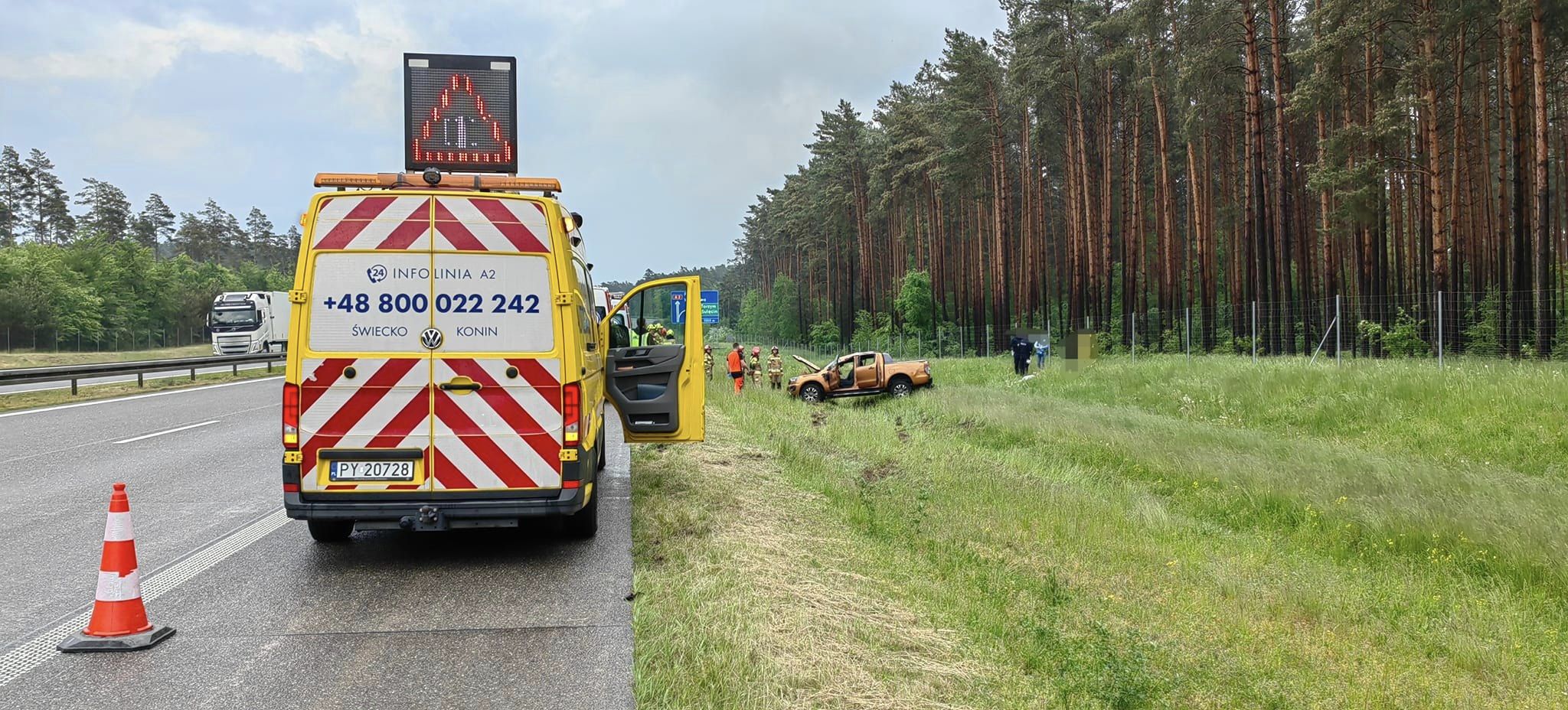 W dniu 23 maja br. na 32 km autostrady A2, doszło do dachowania samochodu osobowego. Po dojeździe zastępów na miejsce zdarzenia zastano samochód Ford Ranger znajdujący się po dachowaniu na poboczu drogi. Podróżujące nim trzy kobiety znajdowały się poza pojazdem, jednej z nich udzielana była pomoc medyczna w karetce ZRM. Pozostałe dwie kobiety były pod opieką ratownika medycznego. Zamiarem taktycznym KDR było zabezpieczenie miejsca akcji, odłączenie dopływu prądu w pojaździe i sprawdzenie czy nie doszło do wycieku płynów eksploatacyjnych z pojazdu. W działaniach udział brały zastępy z OSP Torzym i JRG Sulęcin.