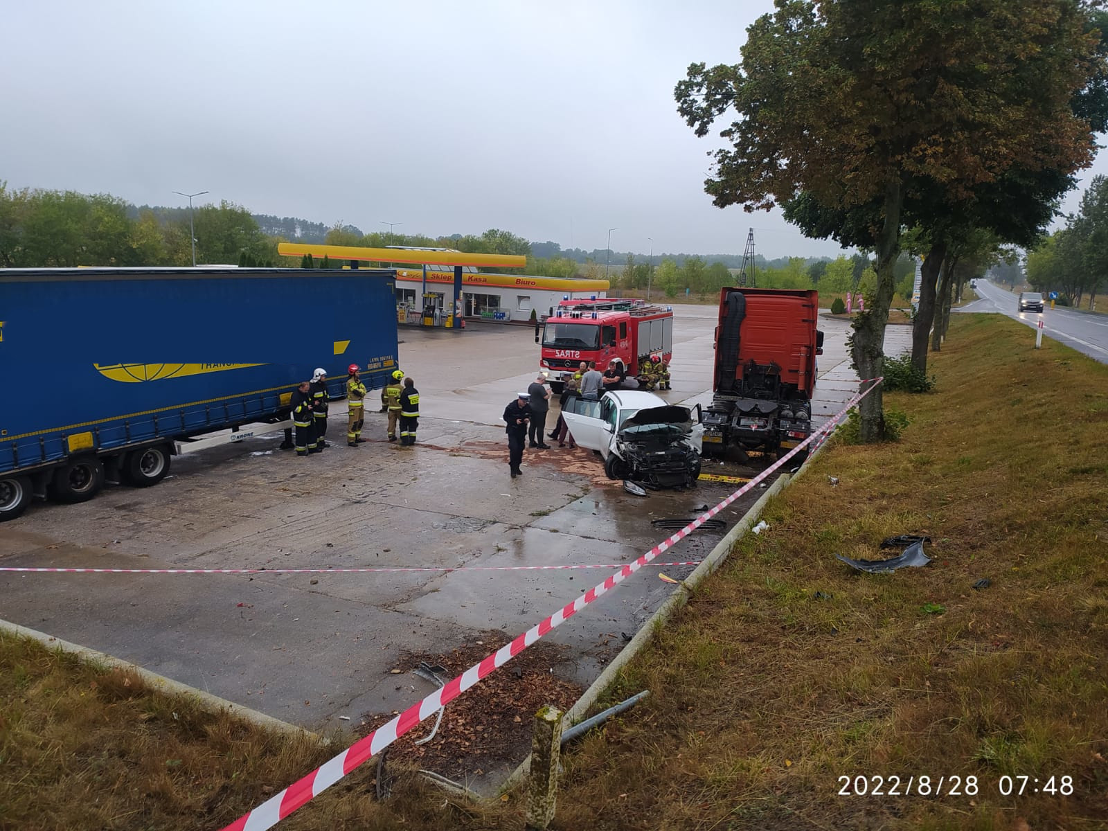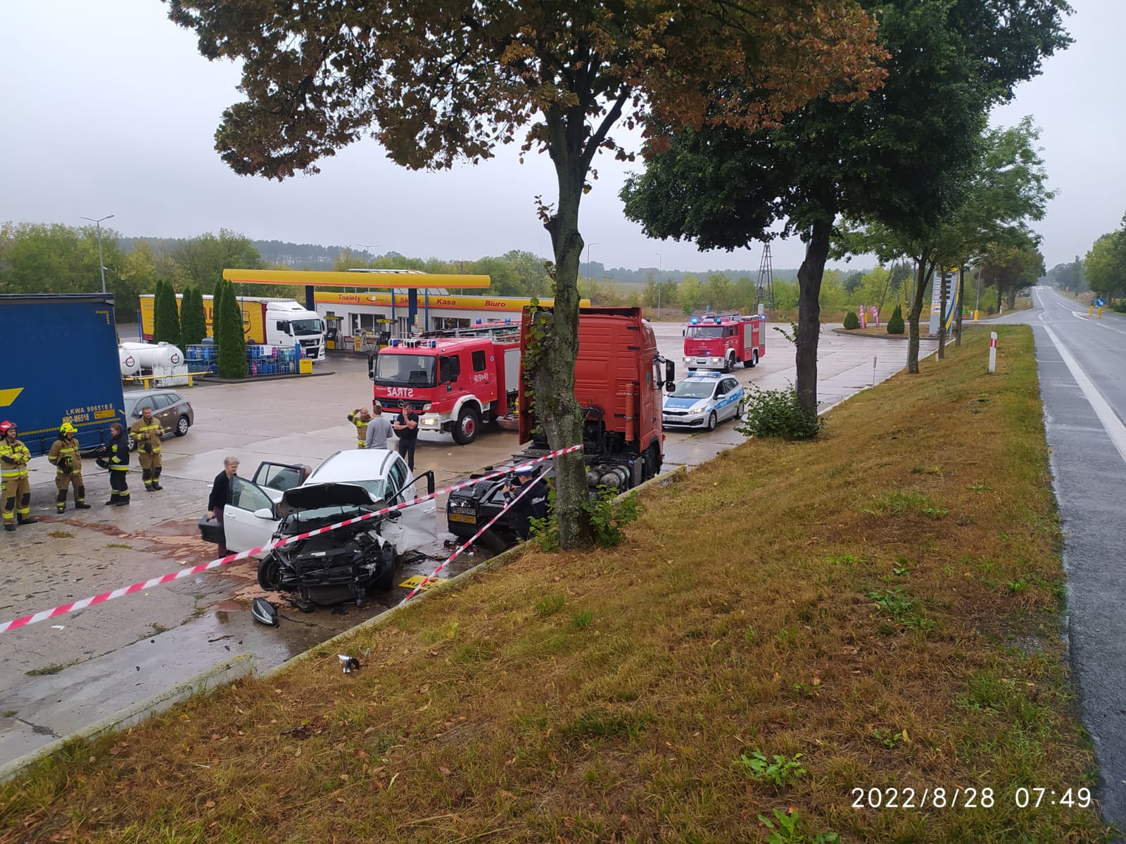 Po dojeździe zastepów na miejsce zastano pojazd osobowy po uderzeniu w ciągnik siodłowy stojący na parkingu stacji paliw w Torzymiu. Kierujący samochodem osobowym podróżował DK 92 i w wyniku zaśnięcia zjechał ze skarpy na parking stacji paliw. Kierujący opuścił pojazd przed przybyciem JOP. Zamiarem taktycznym KDR było zabezpieczenie miejsca zdarzenia, zabezpieczenie pojazdu pod kątem przeciwpożarowym, udzielenie kpp dla kierowcy samochodu osobowego oraz ustalenie czy nie występują dodatkowe zagrożenia. W działaniach udział brały zastępy OSP w Korytach, OSP w Torzymiu i JRG w Sulęcinie.