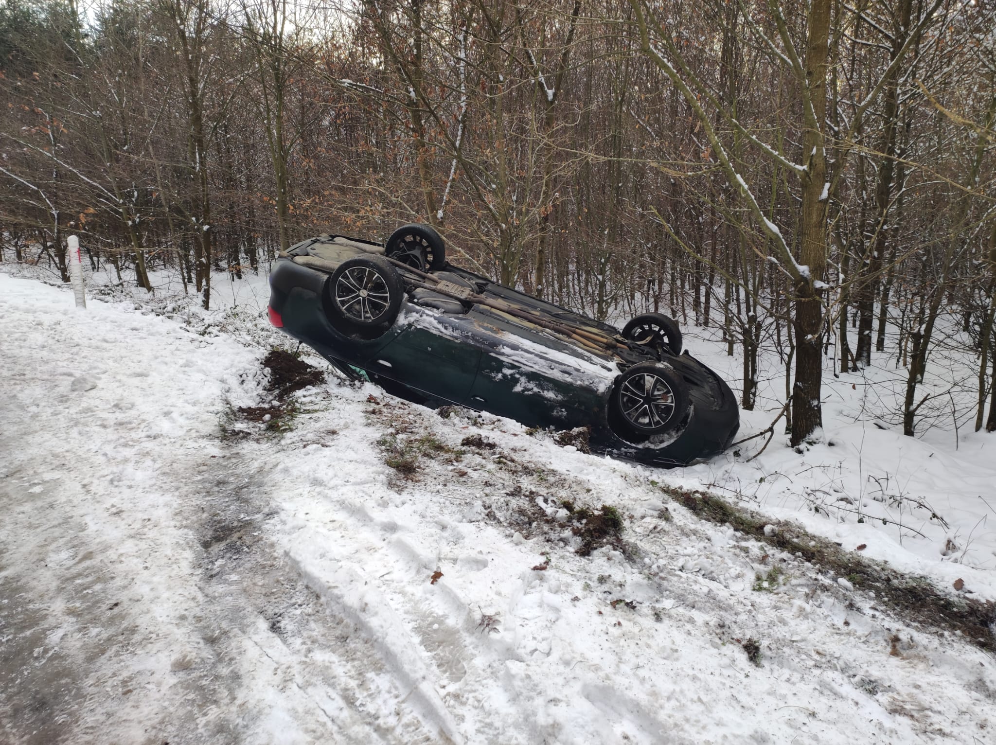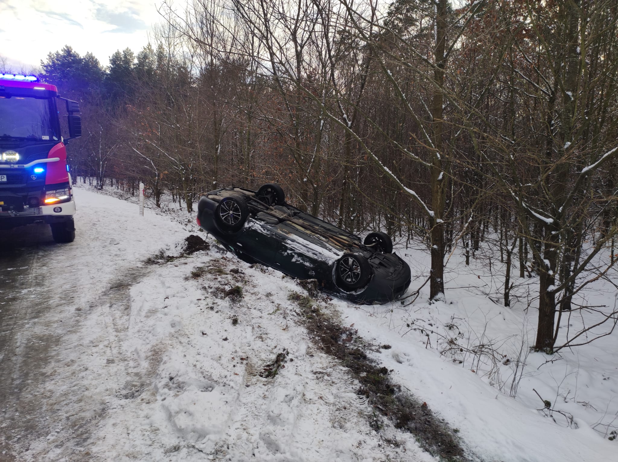 W dniu 13 stycznia br. zastępy zostały zadysponowane do wypadku na drodze powiatowej nr 1265F pomiędzy Torzymiem i Prześlicami. Po dojeździe zastępów na miejsce zdarzenia zastano samochód osobowy leżący na dachu na poboczu drogi. W zdarzeniu nie było osób poszkodowanych. Działania zastępów polegały na zabezpieczeniu miejsca zdarzenia i zabezpieczeniu pojazdu pod kątem przeciwpożarowym. W działaniach udział brały zastępy z JRG Sulęcin i OSP Torzym.