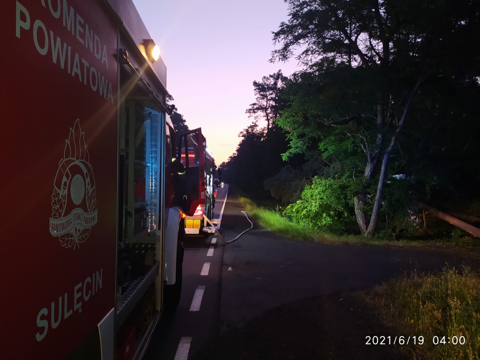 W dniu 19.06.2021r. około godz. 02:24 na drodze krajowej nr 22 miało miejsce zdarzenie drogowe, w którym uczestniczył jeden pojazd ciężarowy. W działaniach brały udział zastępy z Jednostki Ratowniczo Gaśniczej z Sulęcina, OSP Lubniewic, OSP Krzeszyc oraz OSP Kołczyn. Na czas prowadzonych działań droga była zamknięta.