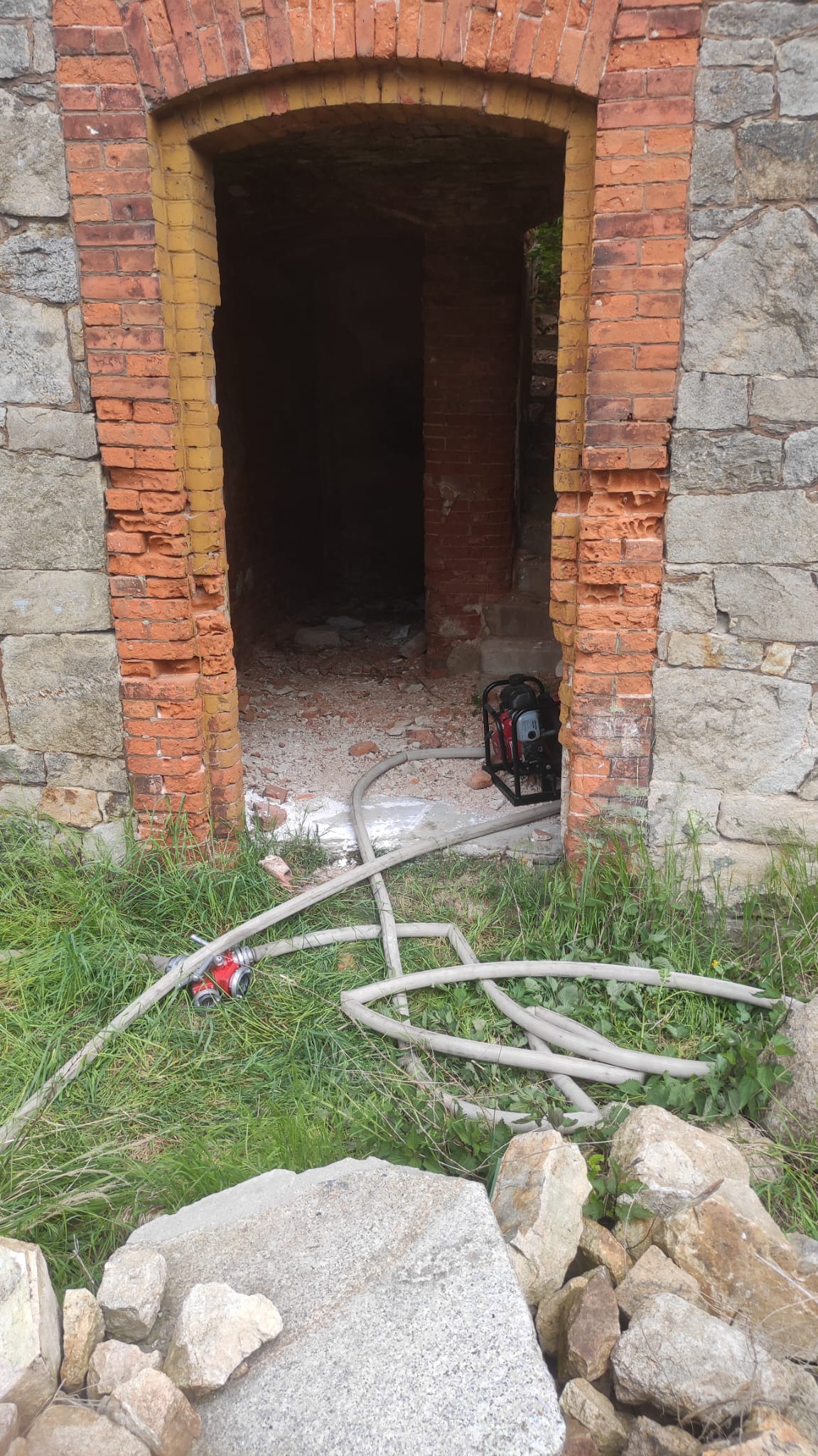 Ważnym elementem ćwiczeń było również pobranie wody do celów gaśniczych. W tym celu strażacy wykorzystali pomp pływające, które pobierały wodę z pobliskiej fosy i przesyłały ją do miejsc, gdzie była potrzebna.