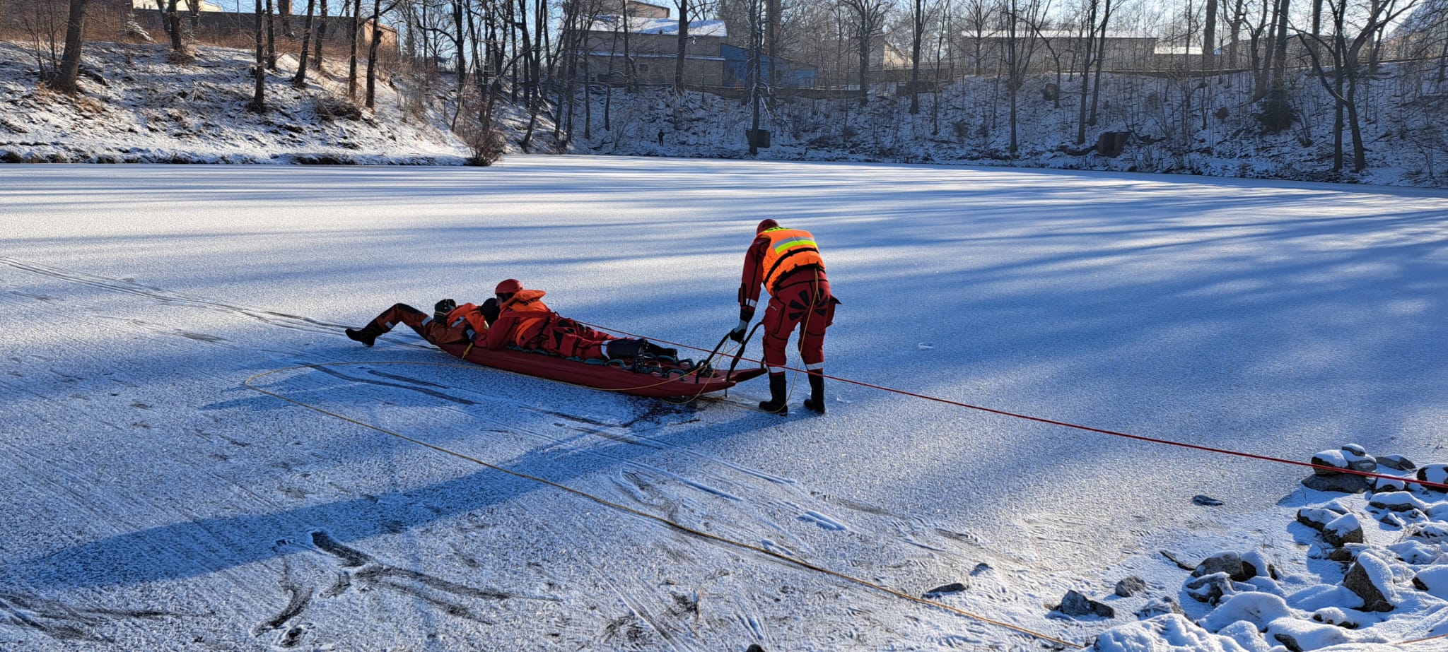 Strażacy doskonalili techniki ratowania osób z przerębla oraz poruszania się po lodzie. Dzisiejsze ćwiczenia skupiały się na używaniu ubrań wypornościowych, technikach ewakuacji z lodu oraz posługiwaniu się specjalistycznym sprzętem ratownictwa wodno-lodowego.