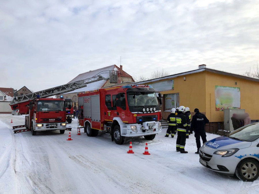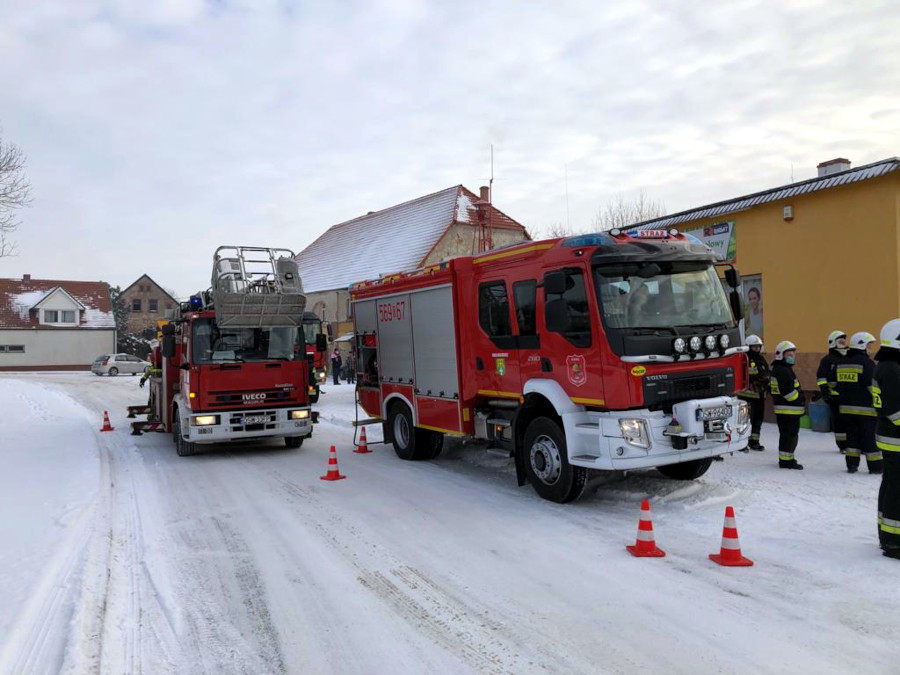 W dniu 18 stycznia 2021 roku o godzinie 09:41 Stanowisko Kierowania Komendanta Powiatowego Państwowej Straży Pożarnej w Świdnicy z Centrum Powiadamiania Ratunkowego we Wrocławiu otrzymało zgłoszenie o pożarze w budynku w miejscowości Strzelce, w którym znajduje się sklep. Na miejsce zdarzenia zostało zadysponowanych 6 zastępów. Z przeprowadzonego rozpoznania wynikało, że w budynku znajdowała się 1 osoba, która nie odniosła żadnych obrażeń, a pożar powstał przy kominku. Paliły się materiały łatwopalne, które znajdowały się zbyt blisko kominka. Dzięki szybko podjętym działaniom gaśniczym przez jednostki ochrony przeciwpożarowej, pożar udało się ugasić w początkowej fazie.