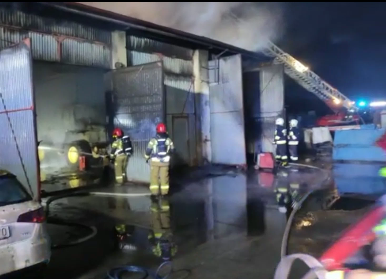 Po dojeździe na miejsce zdarzenia pierwszych pojazdów straży stwierdzono, że pożarem objęty jest cały garaż, w którym były znajdował sprzęt oraz pięć pojazdów. Działania były prowadzone w obronie budynku biurowo-mieszkalny oraz działania gaśnicze garażu. Dzięki wysiłkowi strażaków obroniono w niemal w stanie nienaruszony budynek biurowo-mieszkalny. Działania zakończyły się o godzinie 3:01.