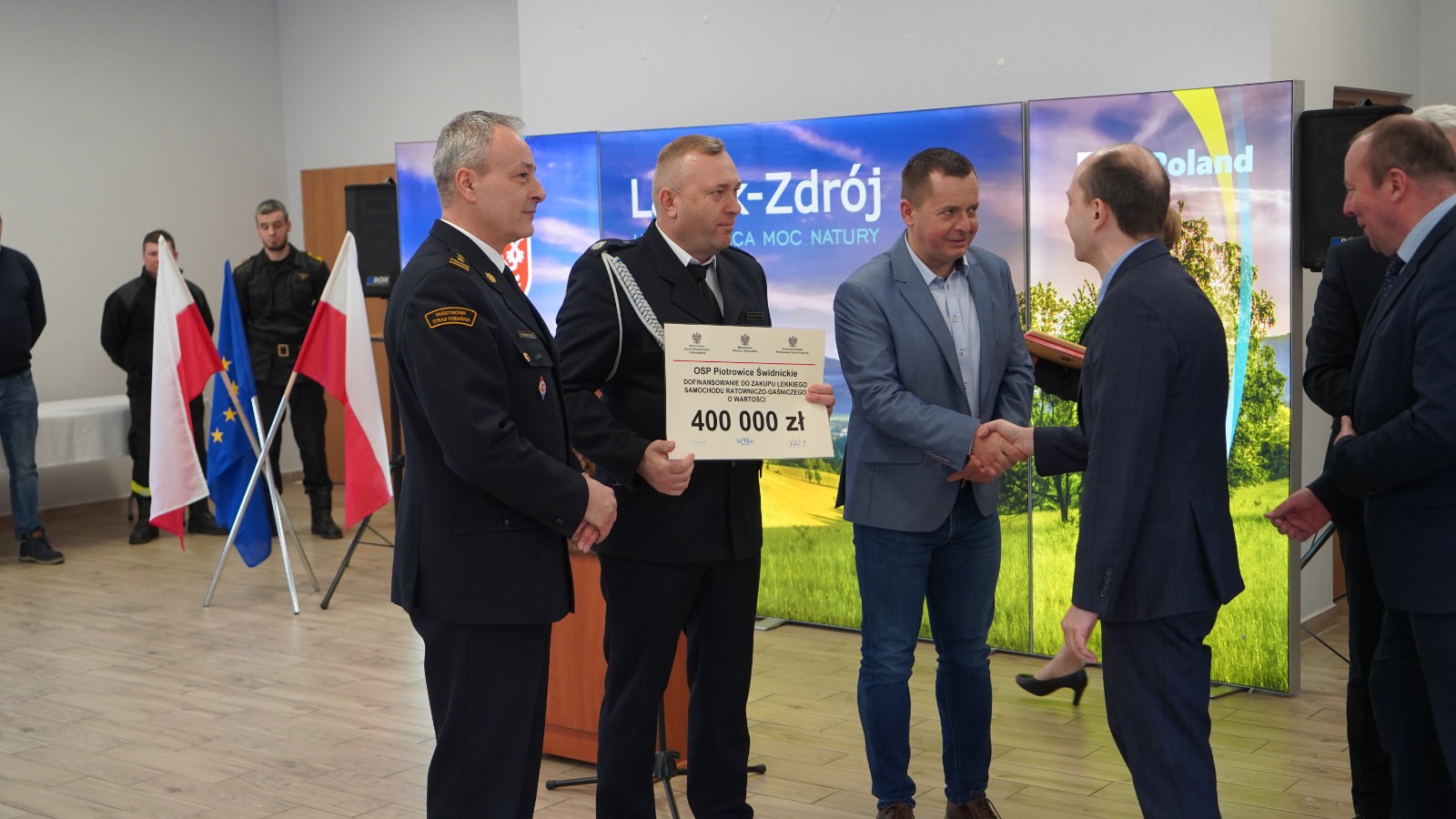 W poniedziałek, 3 kwietnia w Trzebieszowicach druhowie z OSP Strzelce oraz OSP Piotrowice Świdnickie odebrali promesy na zakup nowych pojazdów ratowniczo – gaśniczych. W trakcie uroczystości wręczono promesy w wysokości 400 tysięcy złotych na zakup lekkiego samochodu ratowniczo – gaśniczego, który trafi do OSP Piotrowice Świdnickie i 950 tysięcy złotych na zakup średniego samochodu, który trafi do OSP Strzelce.