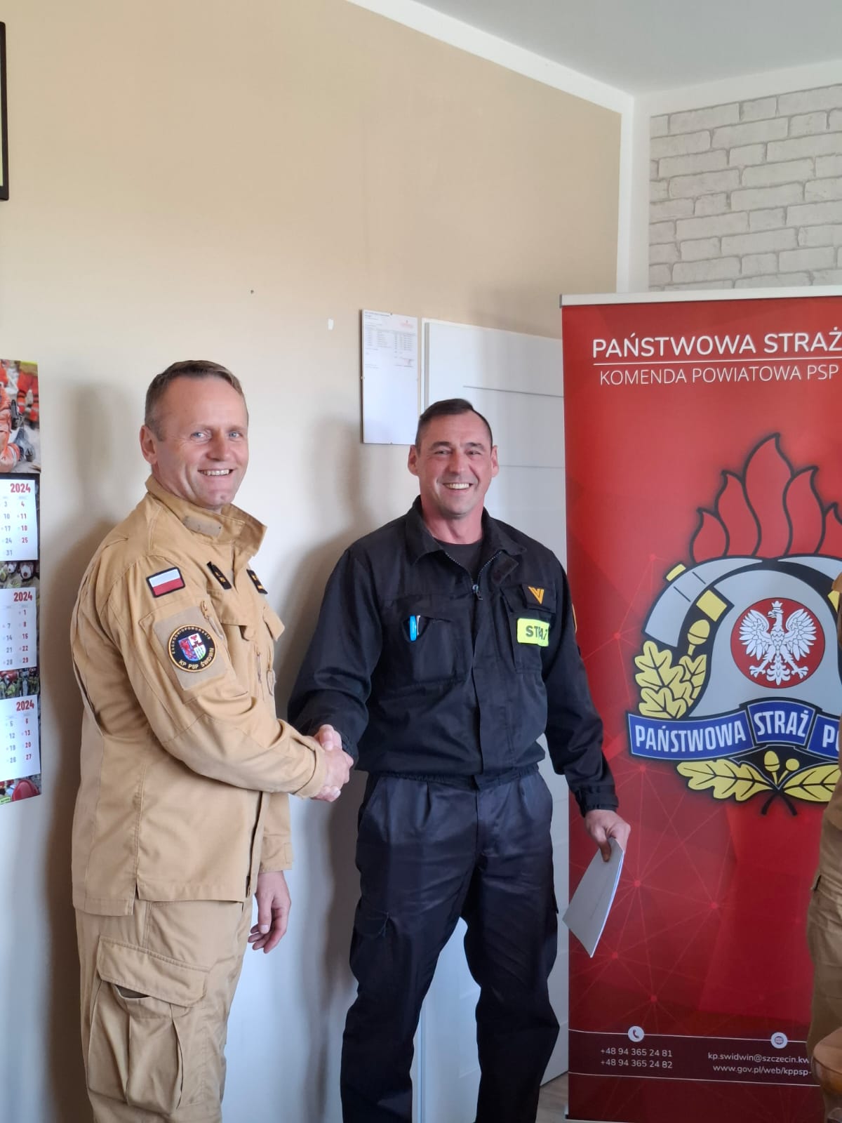 01 października 2024r. Komendant Powiatowy Państwowej Straży Pożarnej w Świdwinie bryg. Mirosław Niezgoda, wręczył nagrodę jubileuszową za 20 lat służby i pracy st. ogn. Grzegorzowi Pauba.