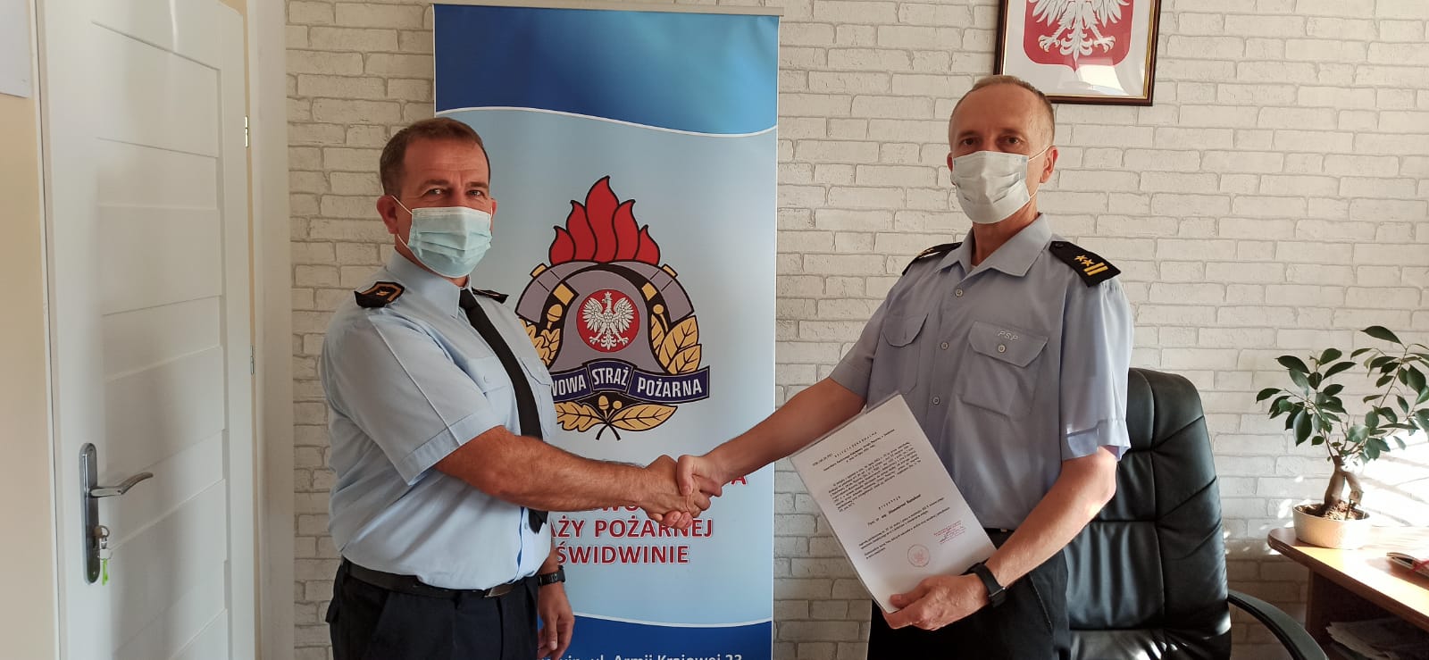 26 lipca 2021 r. obchodziliśmy uroczystość 25-lecia pracy i służby naszego kolegi st. asp. Sławomira Buniaka. Wręczenia nagrody jubileuszowej dokonał Komendant Powiatowy Państwowej Straży Pożarnej w Świdwinie bryg. mgr inż. Józef Brzeziński w asyście Zastępcy Komendanta Powiatowego PSP w Świdwinie bryg. mgr inż. Mirosława Niezgody . Naszemu koledze st. asp. Sławomirowi Buniakowi gratulujemy oraz życzymy sukcesów w służbie, spełnienia marzeń i oczywiście kolejnych długich lat w szeregach Państwowej Straży Pożarnej.