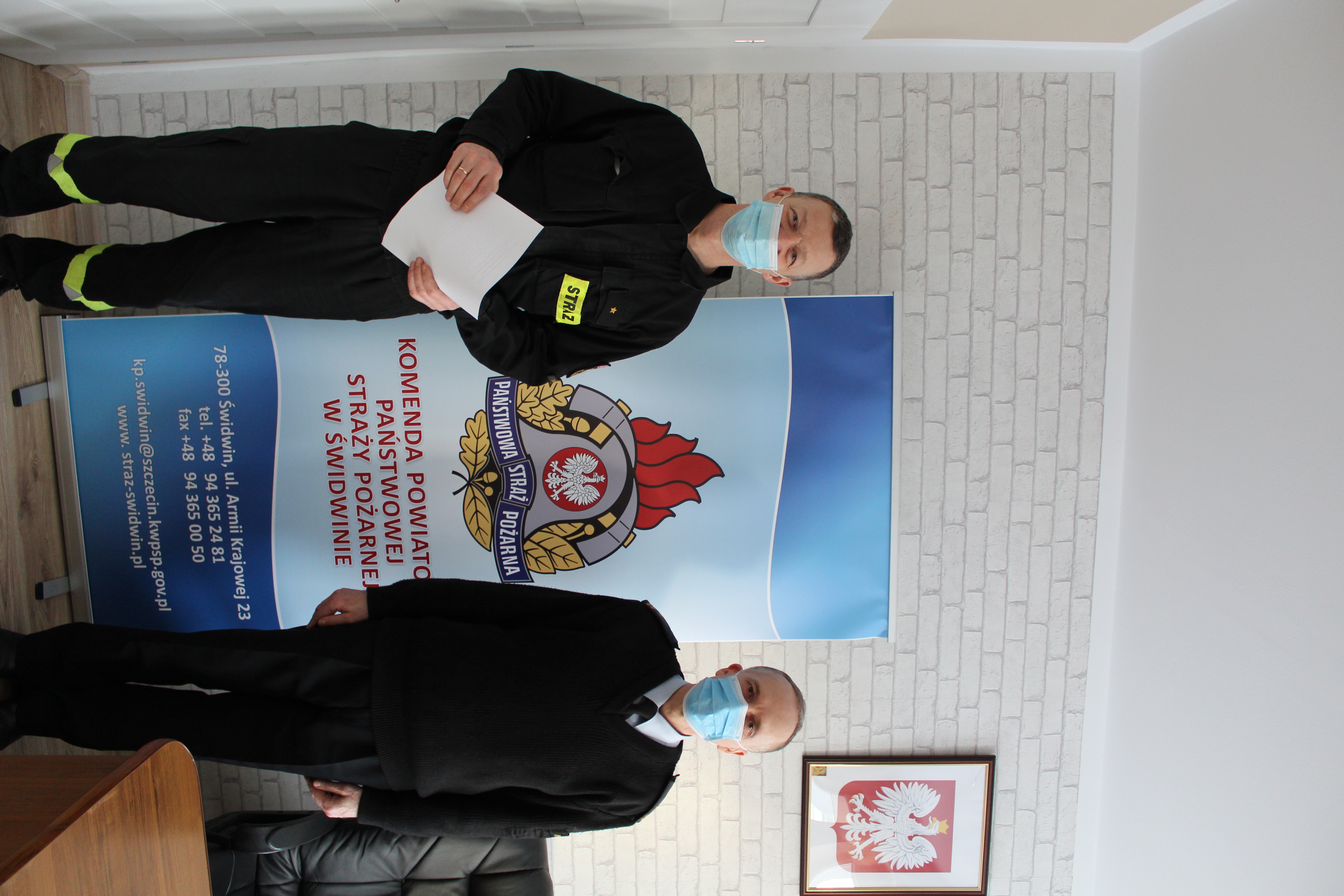Wręczenia nagrody jubileuszowej dokonał Komendant Powiatowy Państwowej Straży Pożarnej w Świdwinie mł. bryg. mgr inż. Józef Brzeziński. Naszemu koledze asp. Markowi Gomułce gratulujemy oraz życzymy sukcesów w służbie, spełnienia marzeń i oczywiście kolejnych długich lat w szeregach Państwowej Straży Pożarnej.