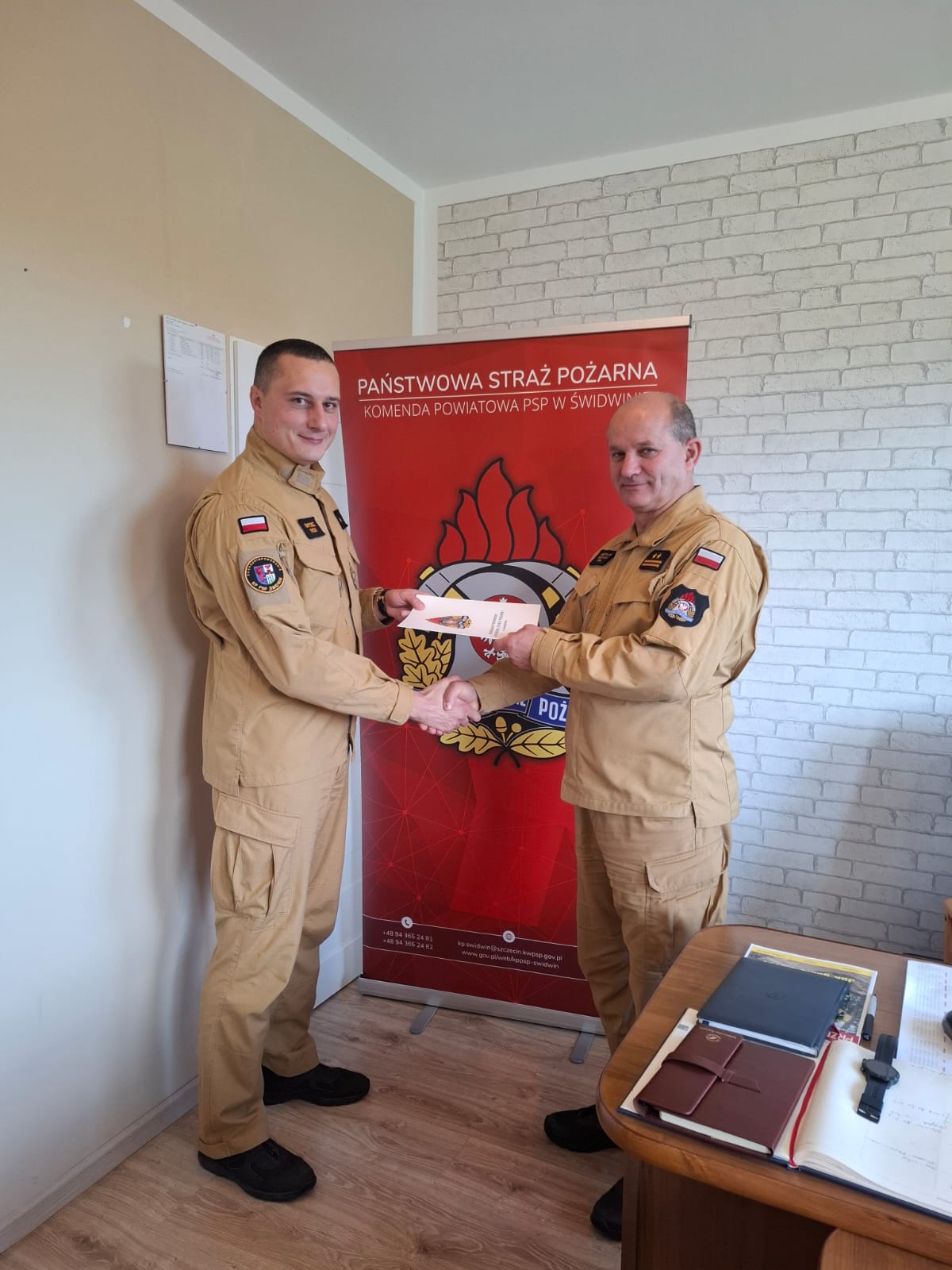15 października 2024 roku Komendant Powiatowy Państwowej Straży Pożarnej w Świdwinie bryg. Mirosław Niezgoda wręczył akt mianowania na wyższe stanowisko służbowe - starszego inspektora sztabowego ds. kontrolno-rozpoznawczych dla asp. Bartosza Krickiego.